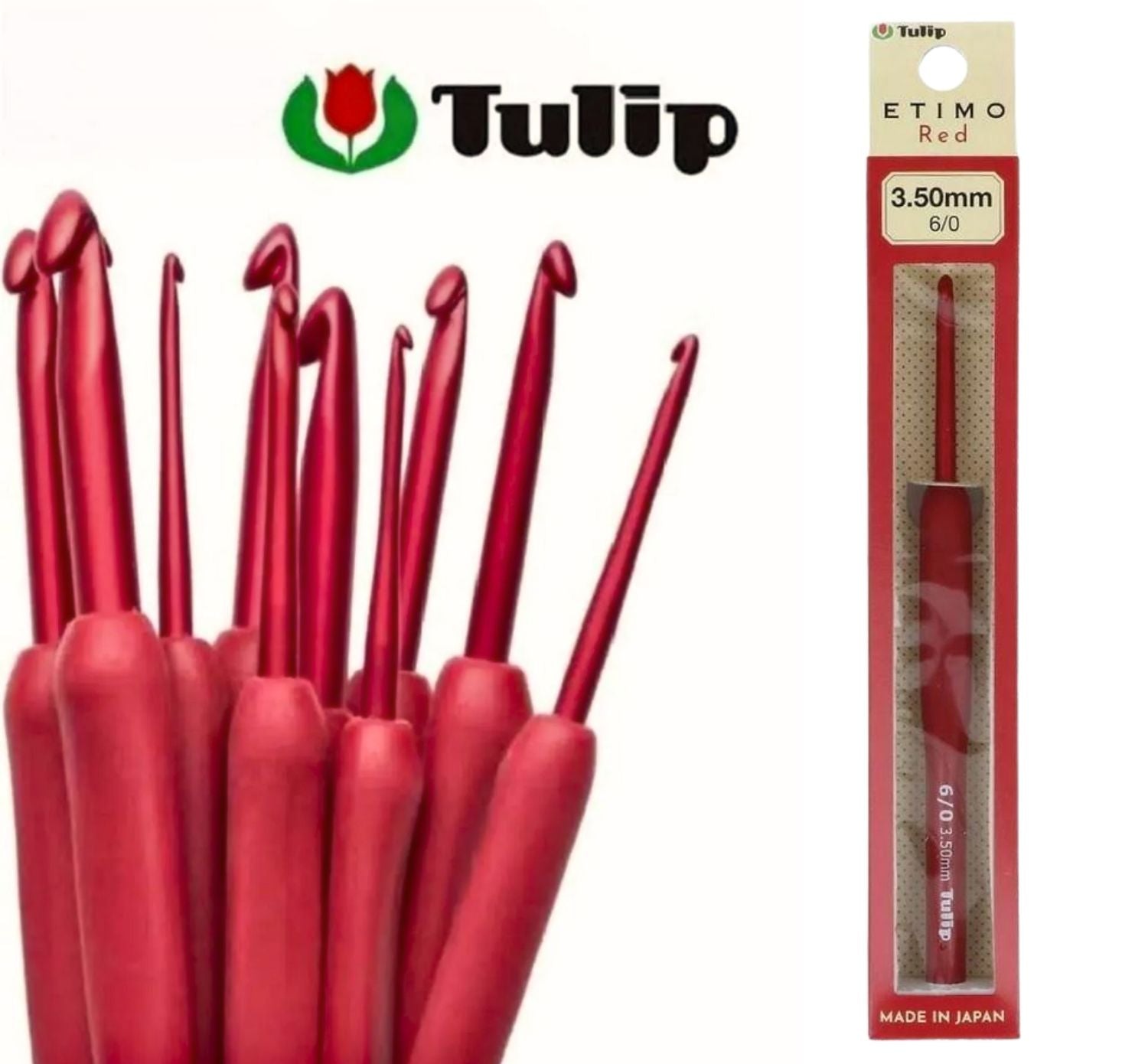 Tulip Etimo Red features a soft, non-slip red handle for comfortable crafting. Its stainless steel hook glides smoothly through stitches and resists wear. The lightweight aluminum body reduces wrist fatigue. Available in sizes from 1.80 mm to 6.5 mm for all your projects.