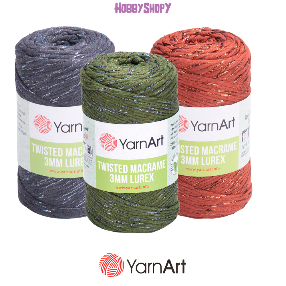 Introduce some sparkle into your macrame creations with YarnArt's new series, Twisted Macrame 3MM Lurex! This thinner version of the classic Twisted Macrame features shiny threads that add extra shine and dimension to your projects. Use it to make unique home decor items and functional products like bags and mats.