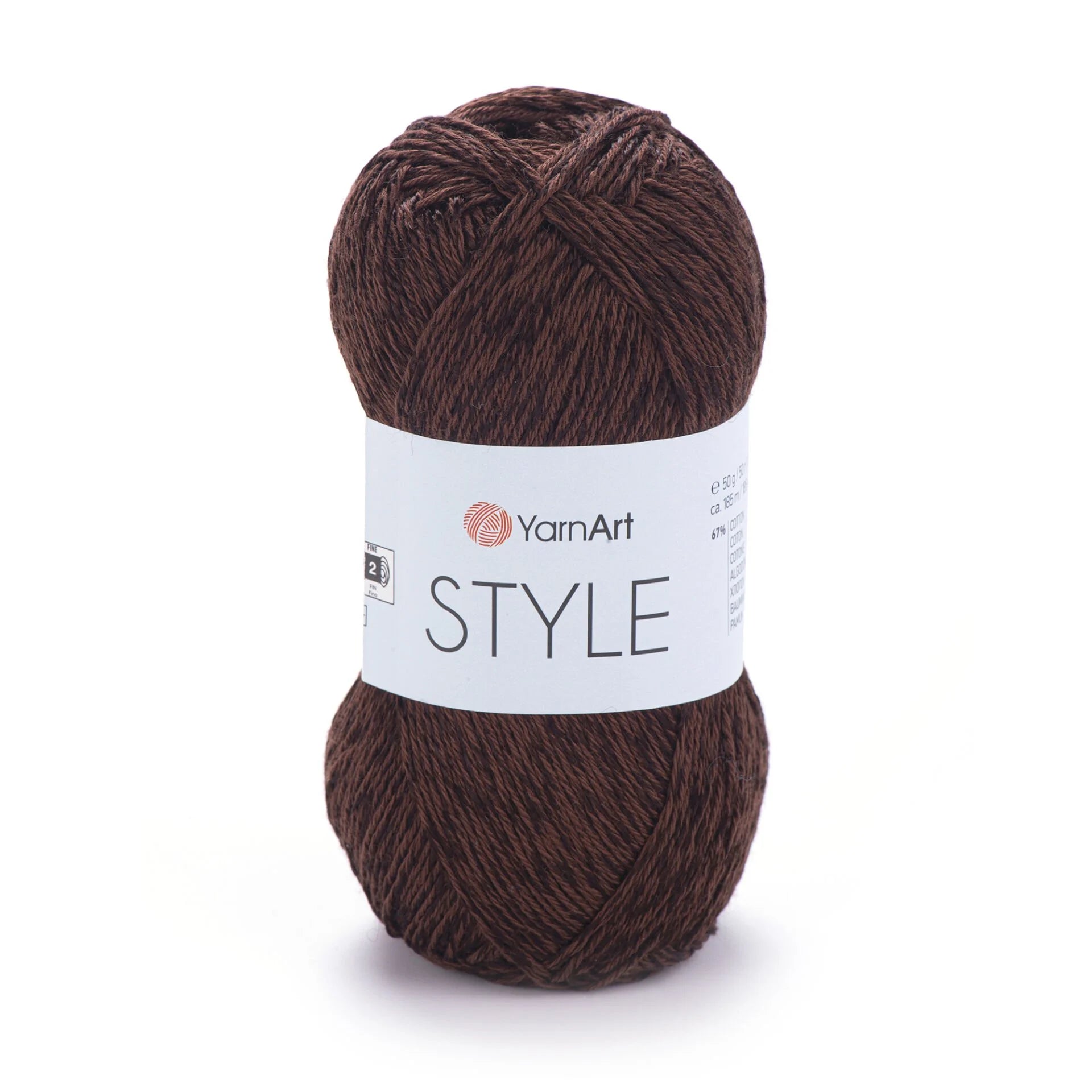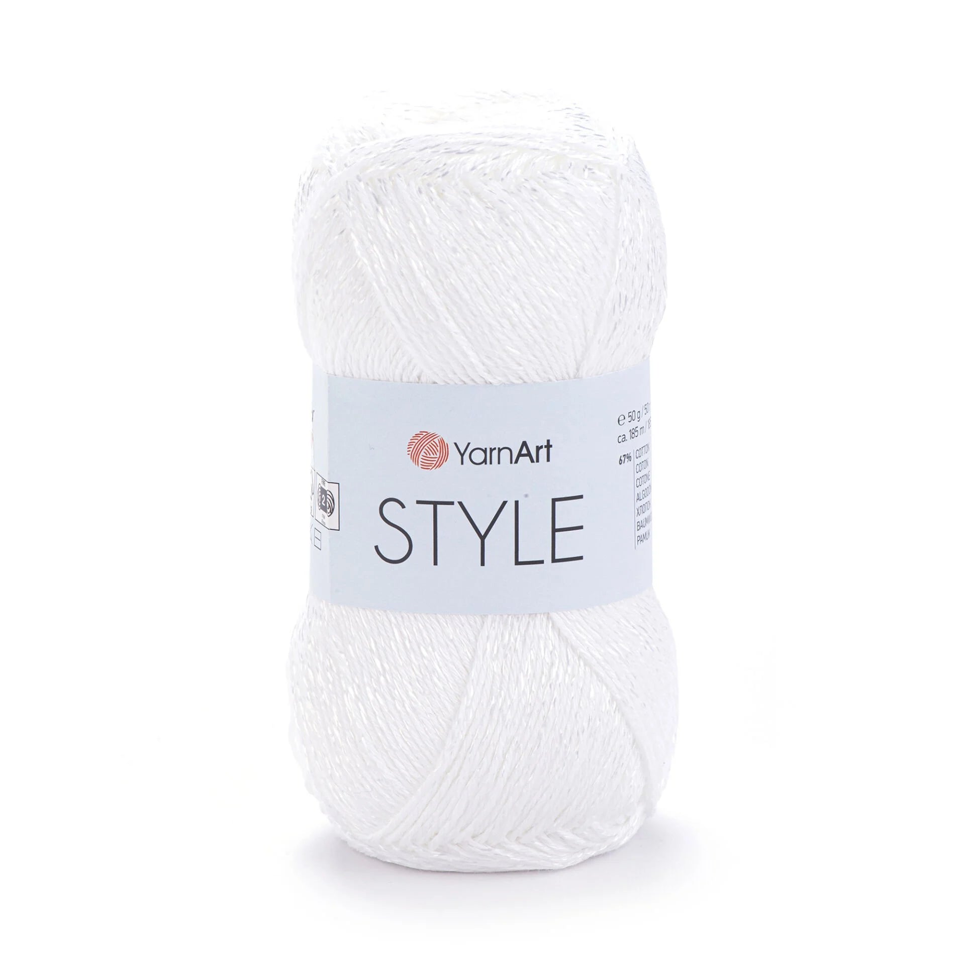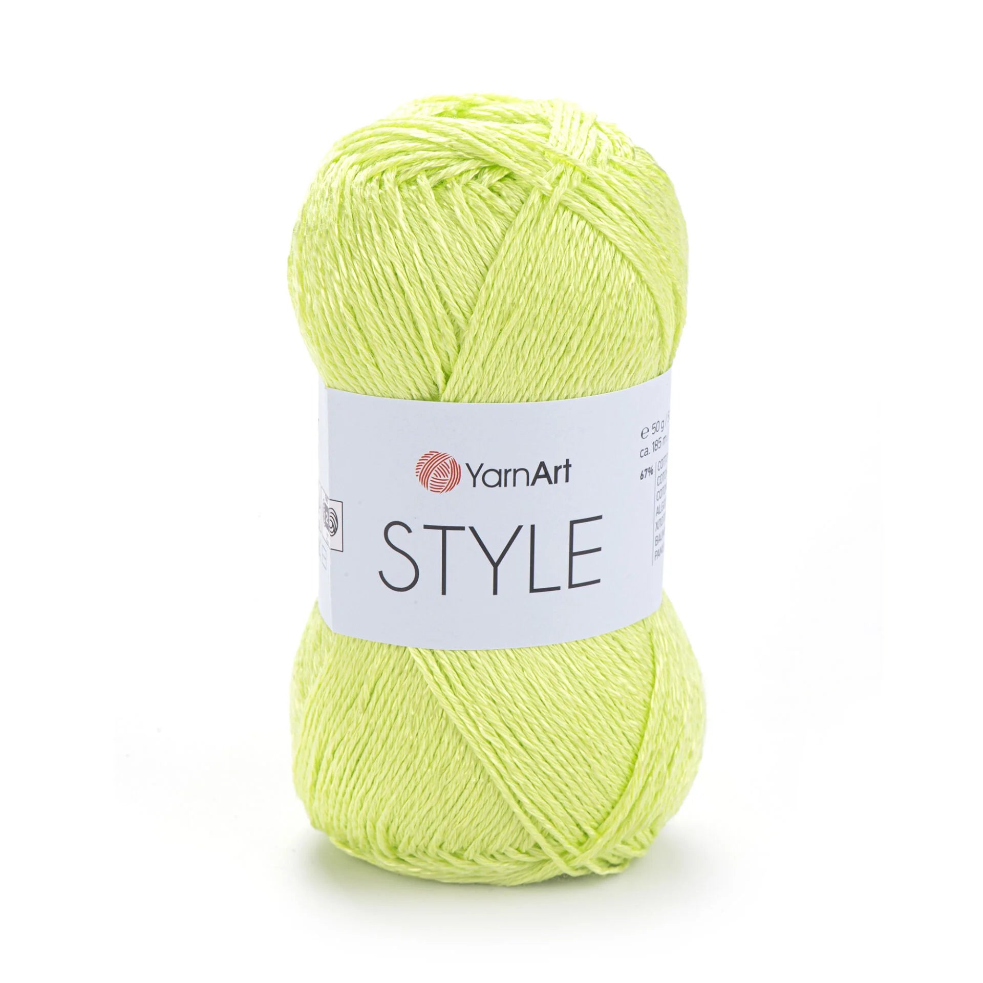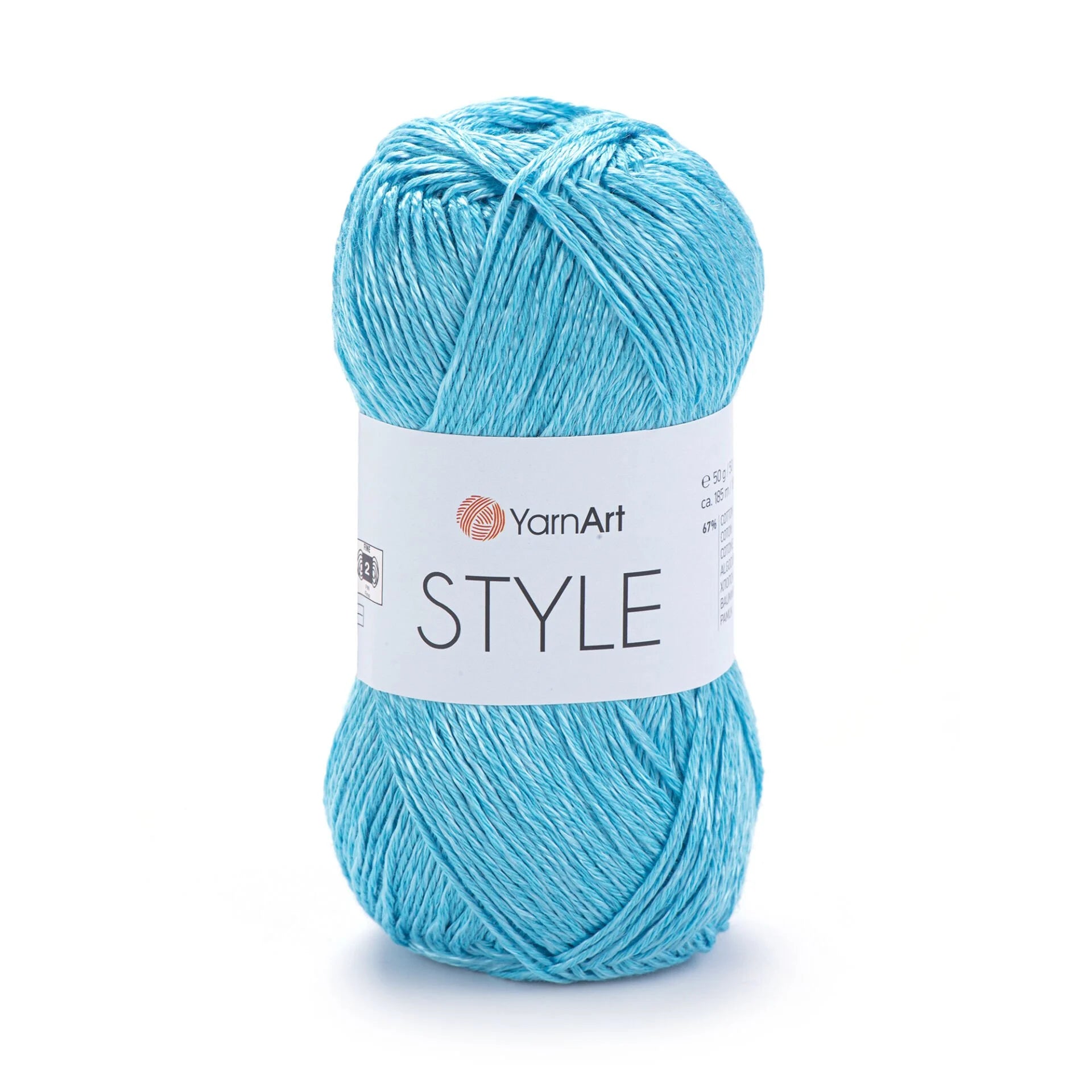 YarnArt Style is a lightweight sport-fine yarn blending cotton and viscose for a soft drape and subtle sheen. Each 50 g skein contains 185 m of breathable, easy-care yarn, perfect for creating elegant summer garments like lace shawls, lightweight tops, stylish blouses, and delicate accessories. Its smooth texture and balanced twist ensure even stitches and excellent drape when worked with 3 mm needles or hooks. The cotton-viscose blend also adds a shiny, luxurious finish—ideal for sophisticated, wearable designs.