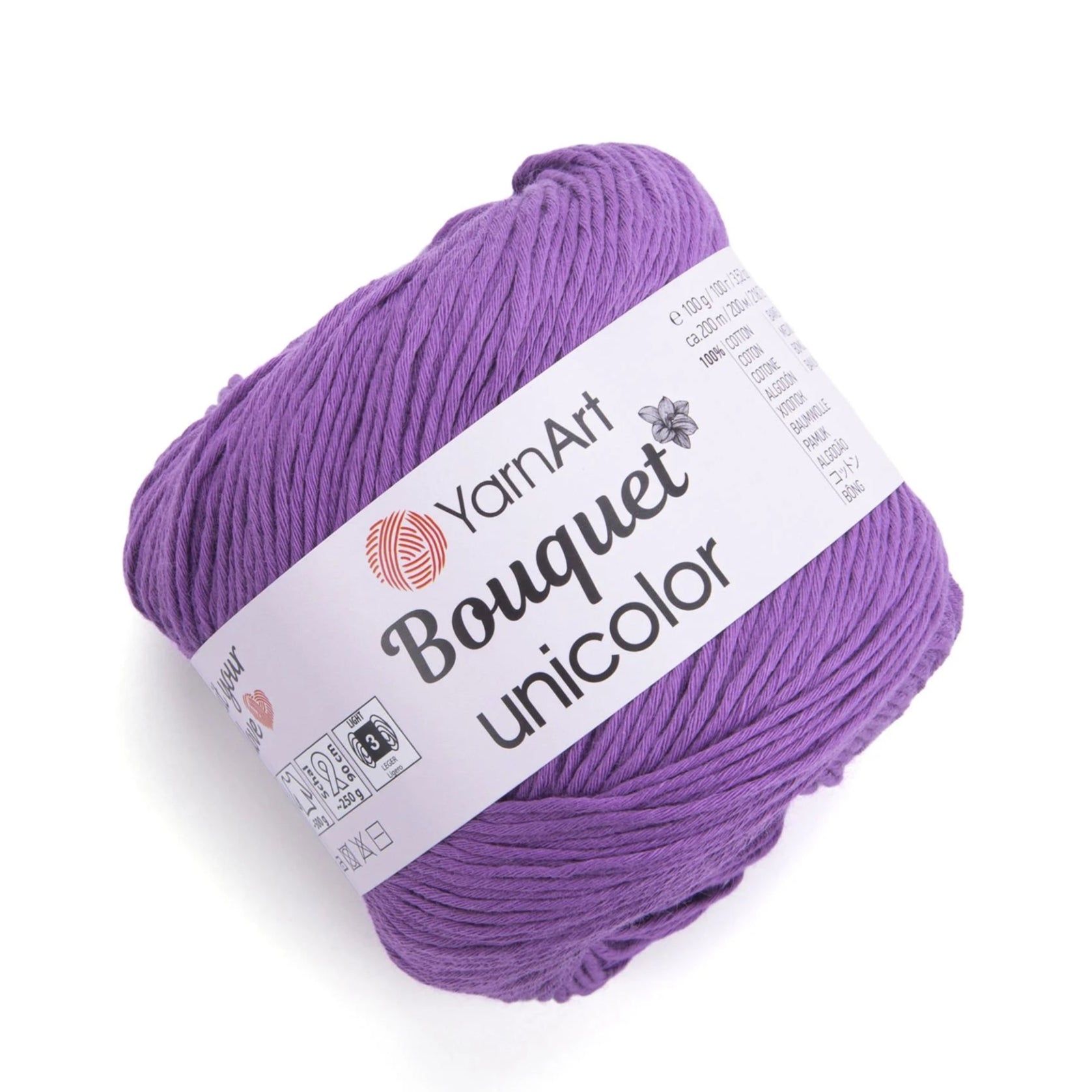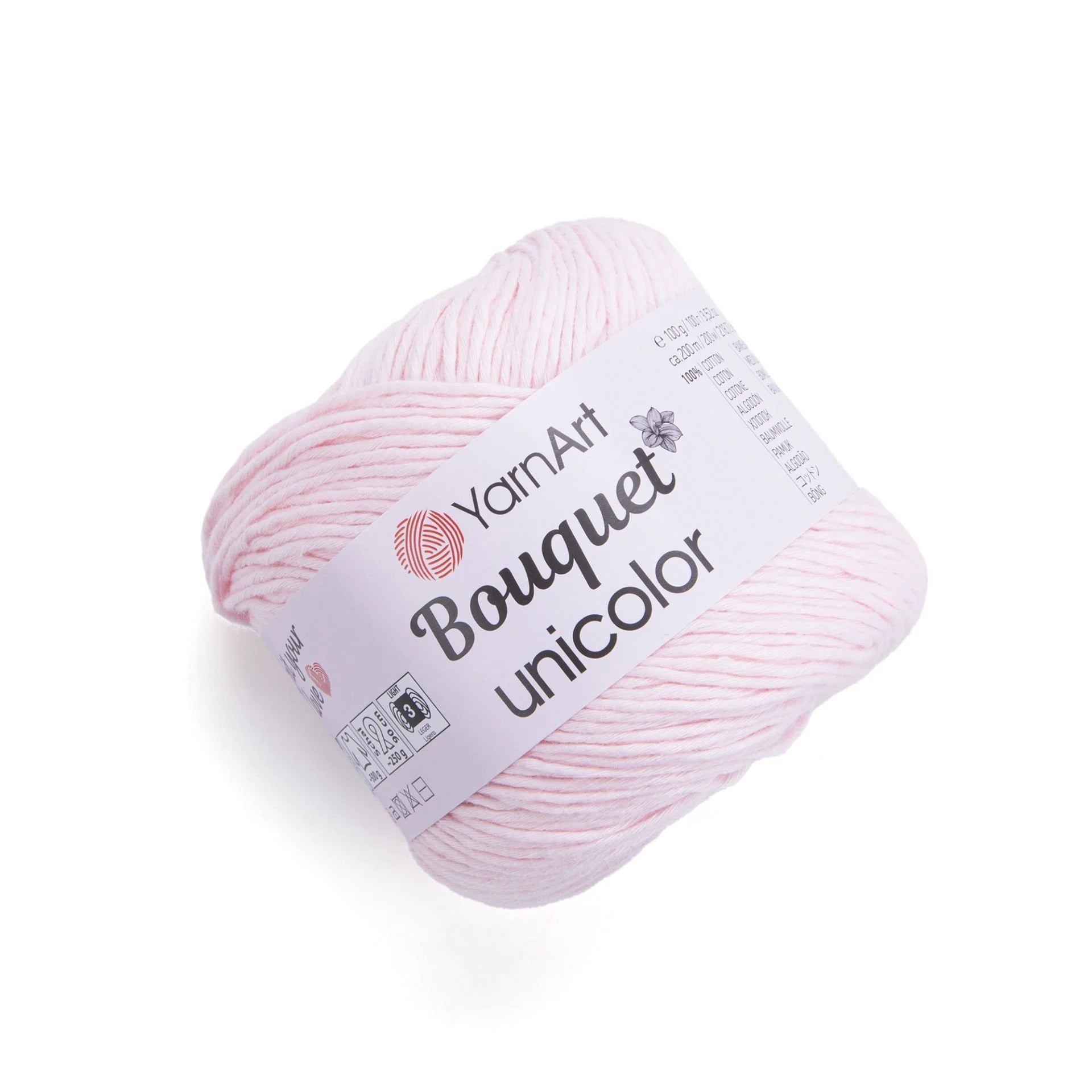 YarnArt Bouquet Unicolor is a soft, lightweight yarn made from 100% cotton, offering a smooth texture and vibrant, solid colors. Its generous 200-meter length per 100-gram skein ensures you have ample material for your projects.