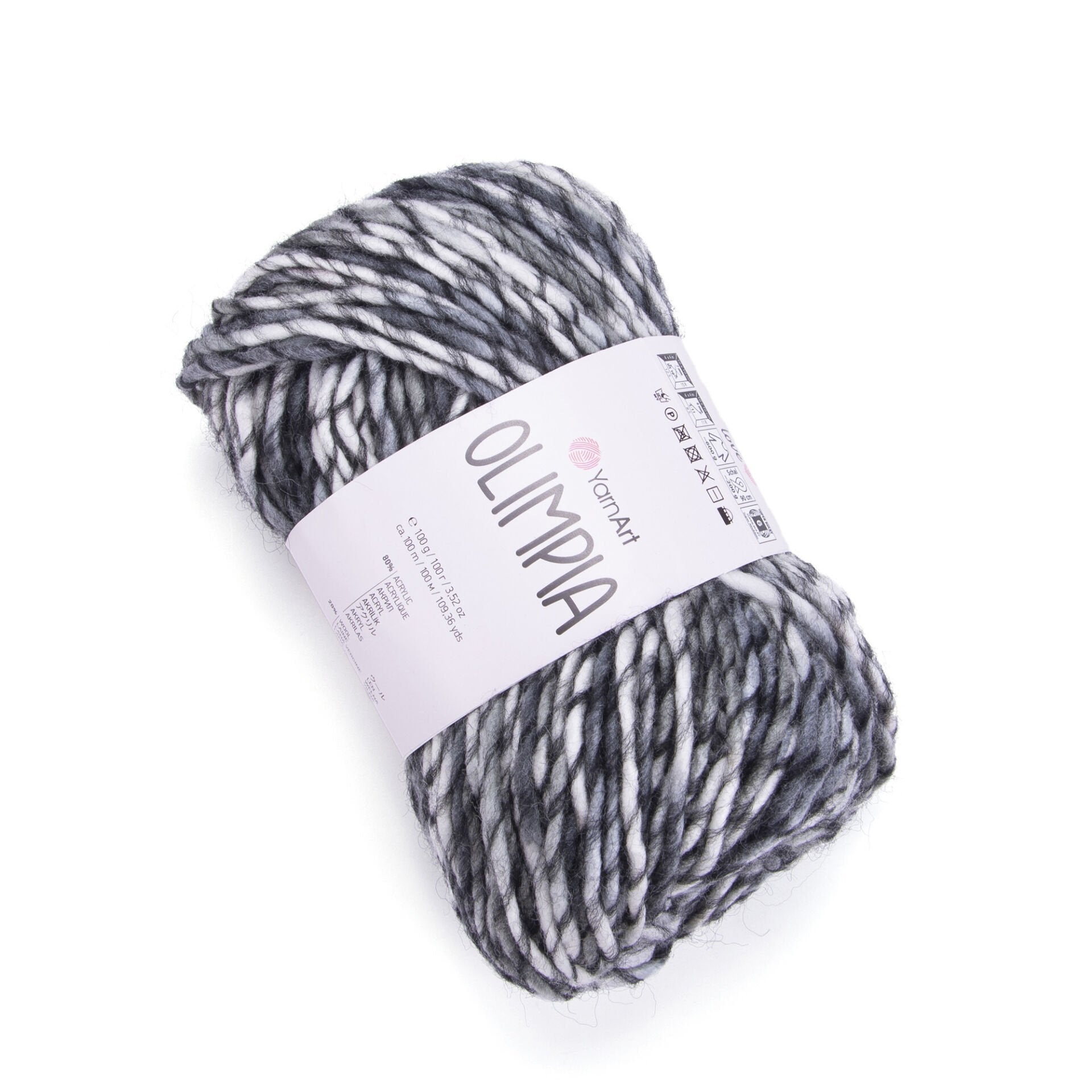 YarnArt Olimpía Multicolor is a vibrant super bulky acrylic-wool blend yarn, ideal for warm winter garments, scarves, and cozy home décor projects.