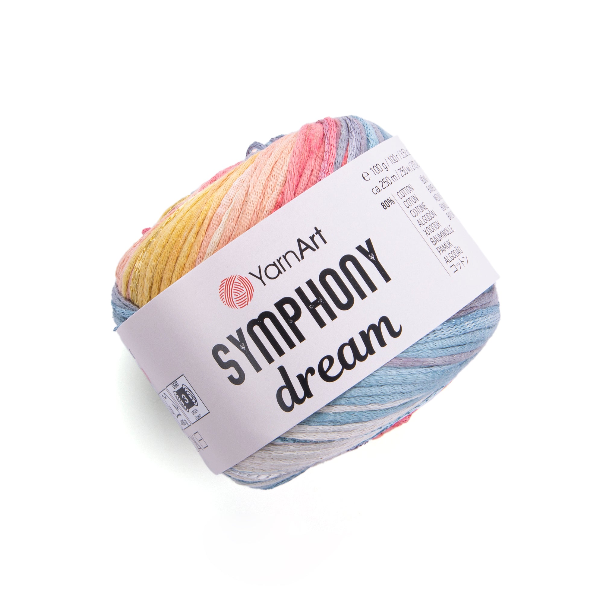 YarnArt Symphony Dream, your go-to summer yarn! With its high cotton content and fabric-like appearance, this yarn adds a 3D effect and softness to all your designs. Easy to use with both needles and hooks, the symphony series offers a wide range of solid colors to mix and match. Perfect for all your clothing and accessory projects!