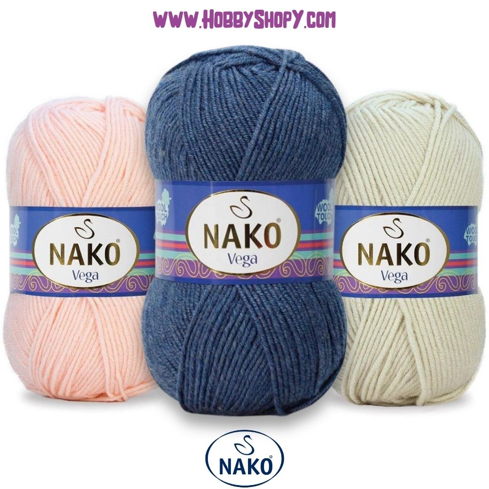 Nako Vega is a %100 premium acrylic yarn with a weight of 100 grams and a label length of 195 meters. Perfect for autumn, winter, and spring projects such as sweaters, scarves, hats, socks, and baby textile products. Find it and more Nako products at HobbyShopy store.