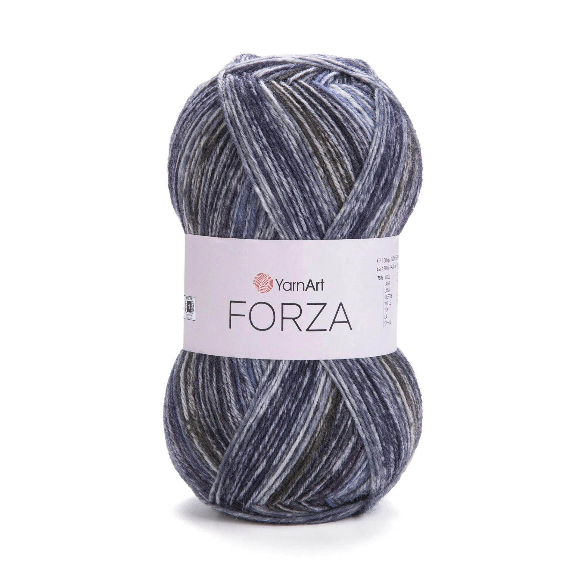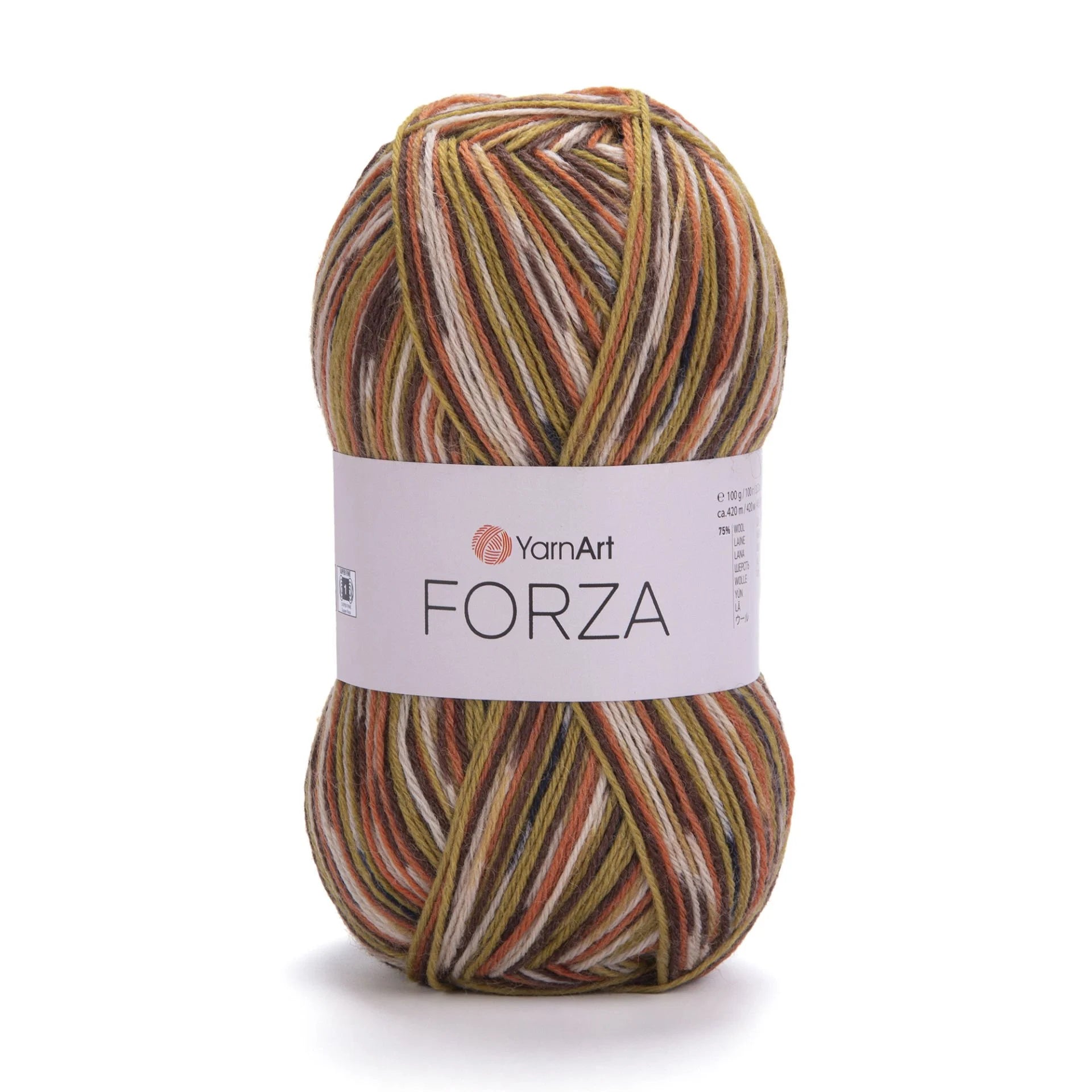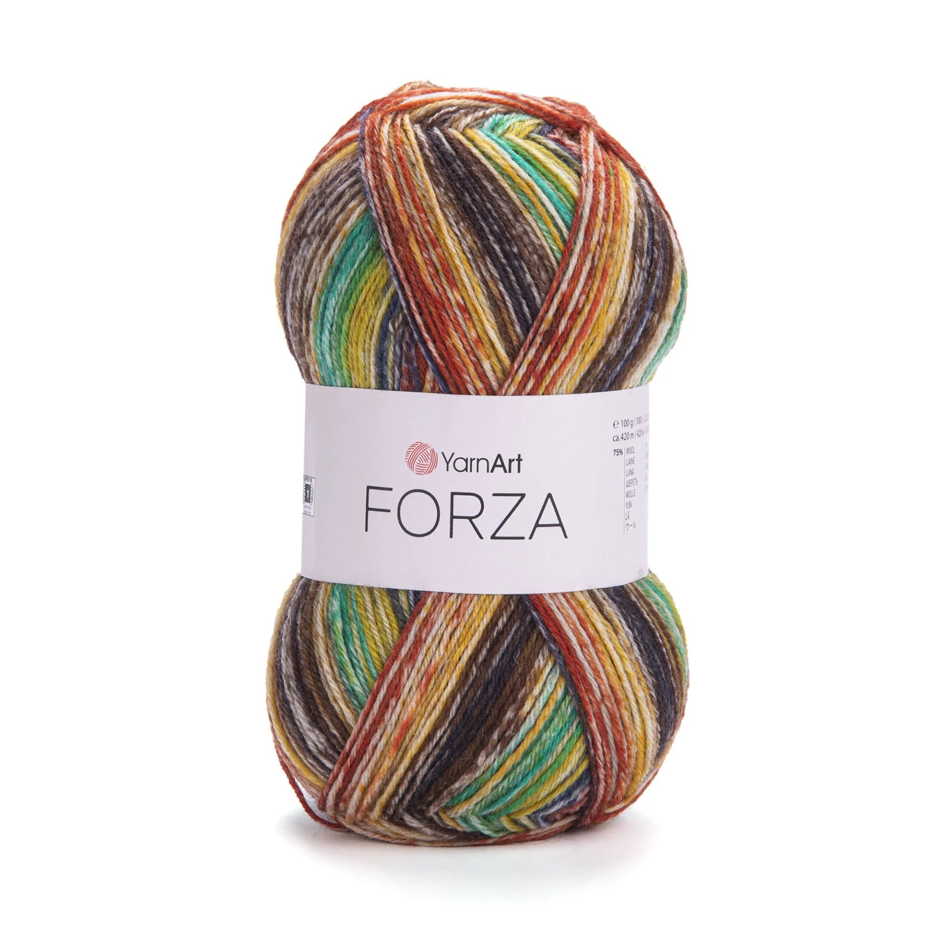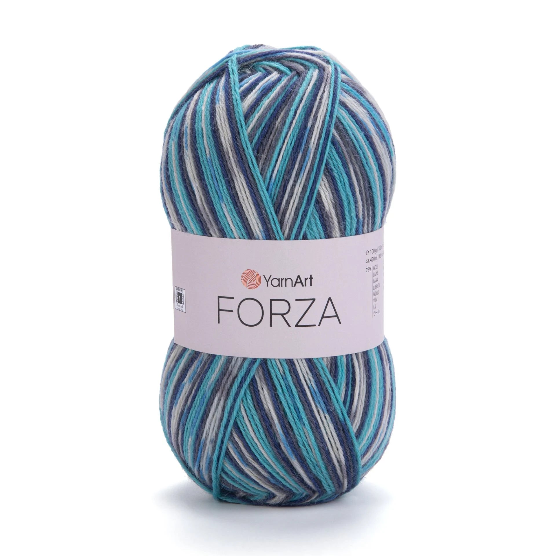 YarnArt Forza is a vibrant, effect yarn crafted from a fine 75% wool, 25% polyamide blend, with a generous 420 m per 100 g skein. Its super-fine gauge provides excellent stitch definition, making it ideal for colorful socks, shawls, lightweight scarves, and detailed layering combinations. The self-striping color transitions add depth, and slight variations may occur between dye lots—ordering enough yarn in one go ensures consistency.
