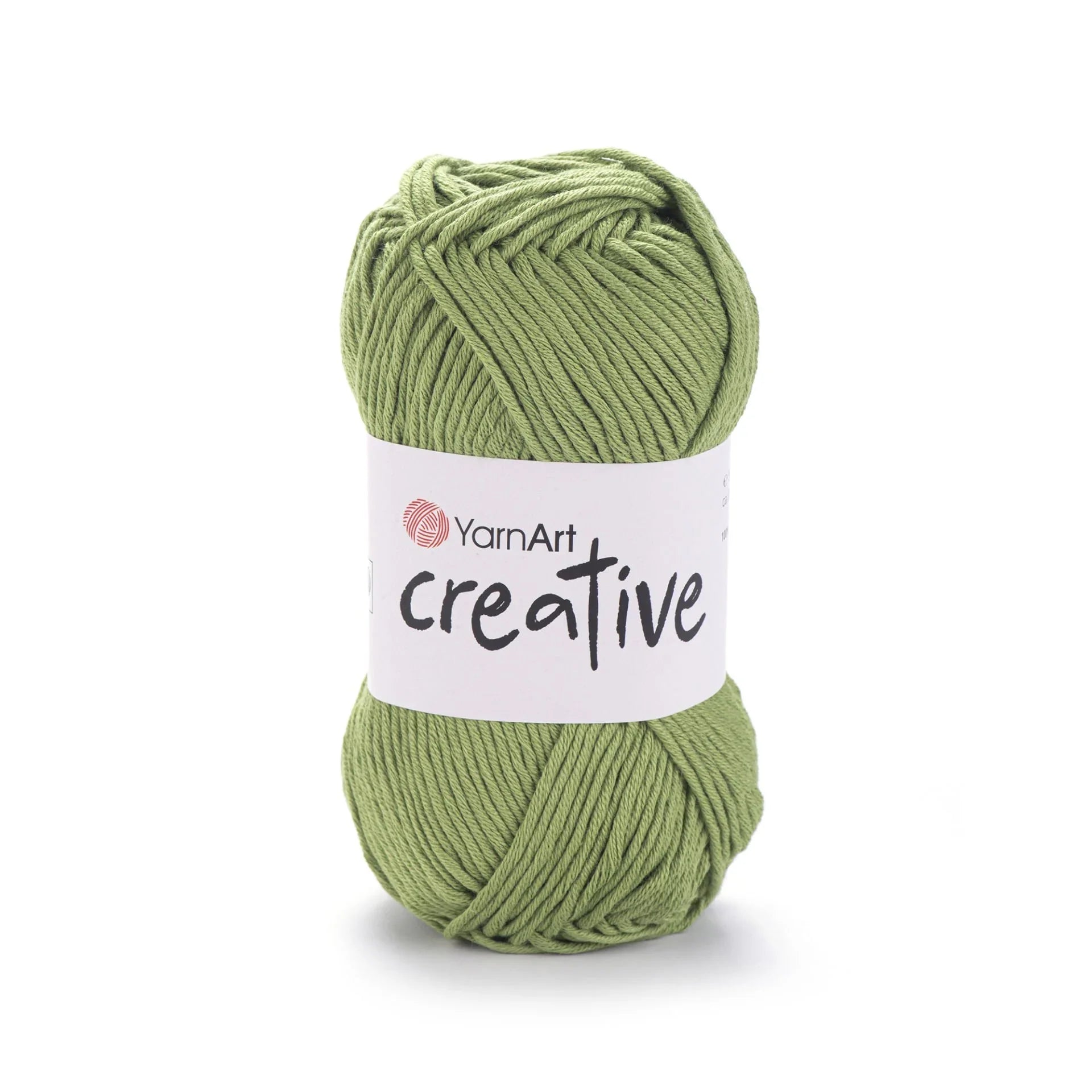 YarnArt Creative is 100% cotton, safe for babies and sensitive skin. Ideal for summer and seasonal knits, bags, belts, accessories, blankets, cushion covers, runners, and home décor. Its vibrant and pastel colors allow unique combinations. Easy to knit or crochet, also perfect for amigurumi toys and punch projects
