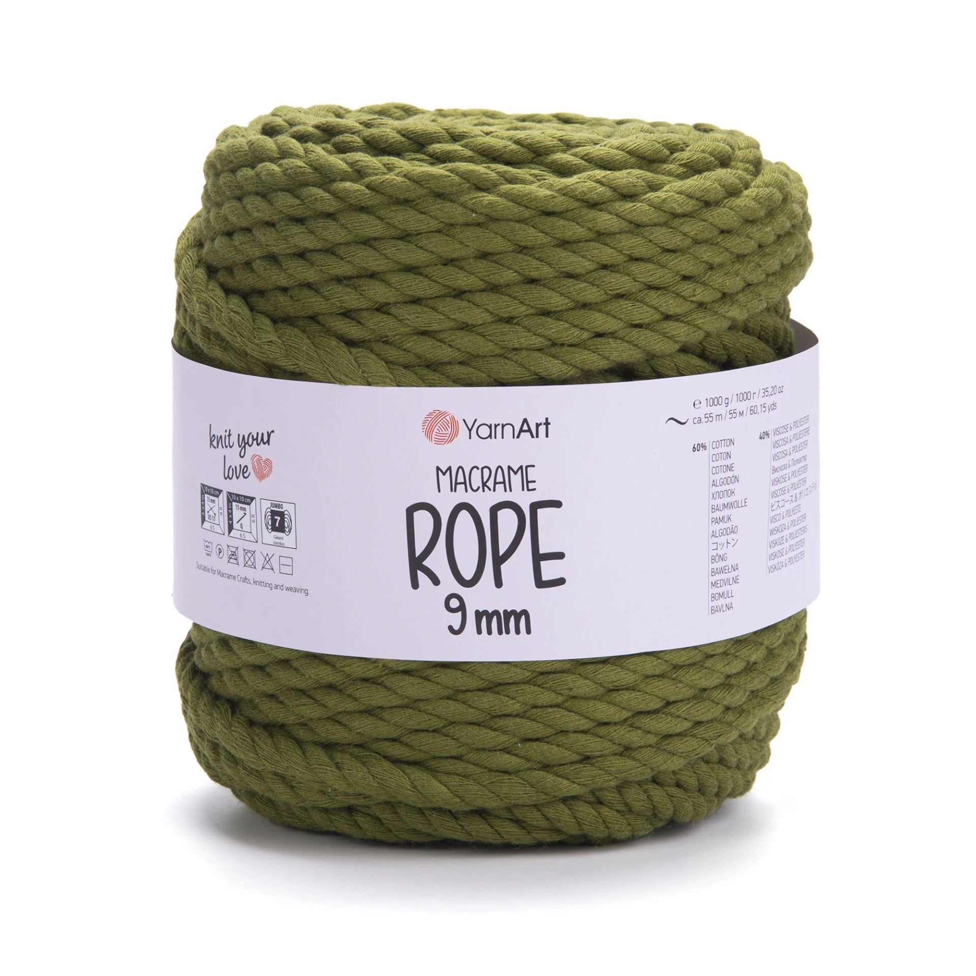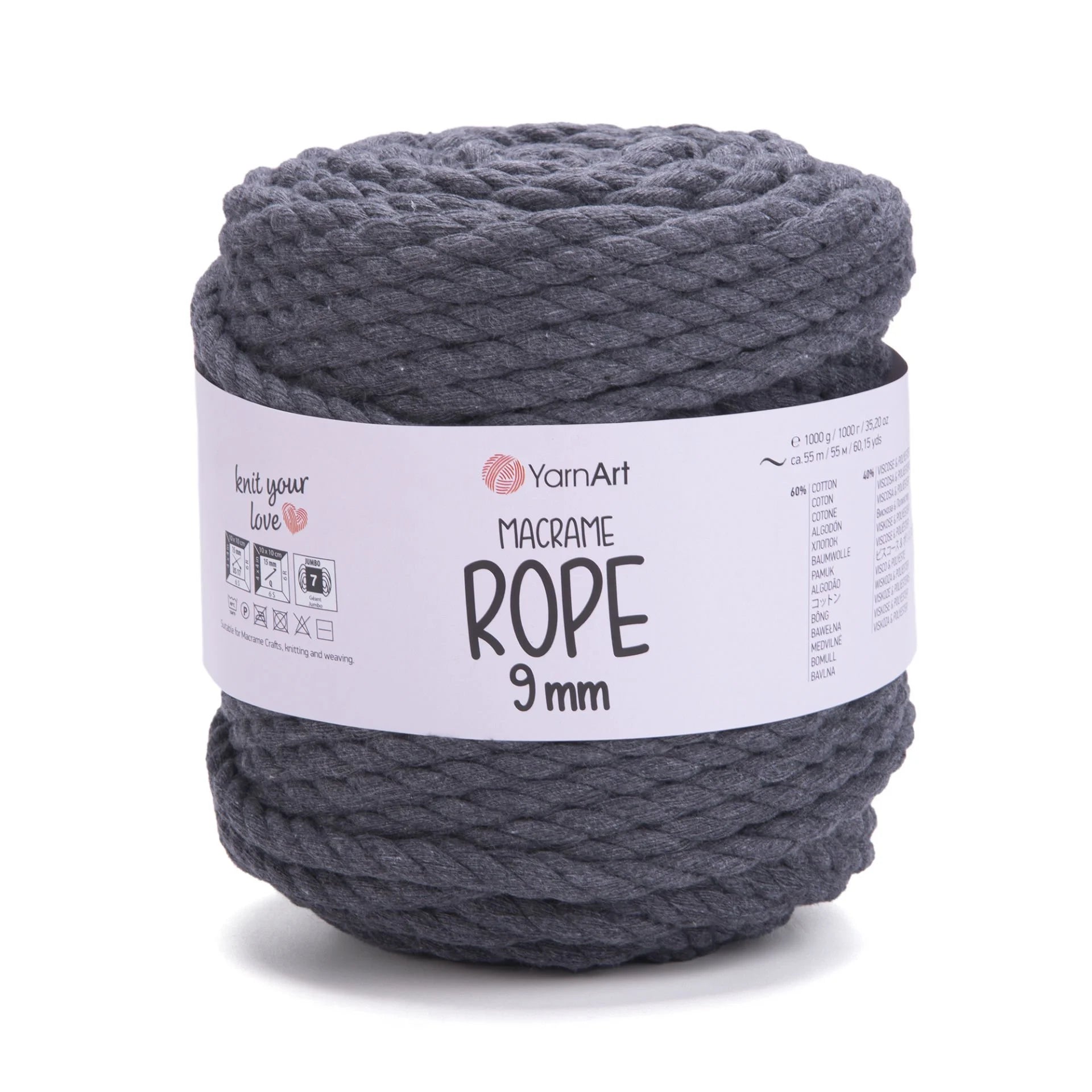 YarnArt Macrame Rope 9 mm is a robust, jumbo-weight macramé cord made from a cotton-viscose/polyester blend. Each 1-kg skein offers about 55 m of thick, rope-like yarn—perfect for creating statement home décor pieces that need structure and durability, such as baskets, hammocks, rugs, and plant holders. The cord’s dense and sturdy texture ensures secure knots and long-lasting form.
