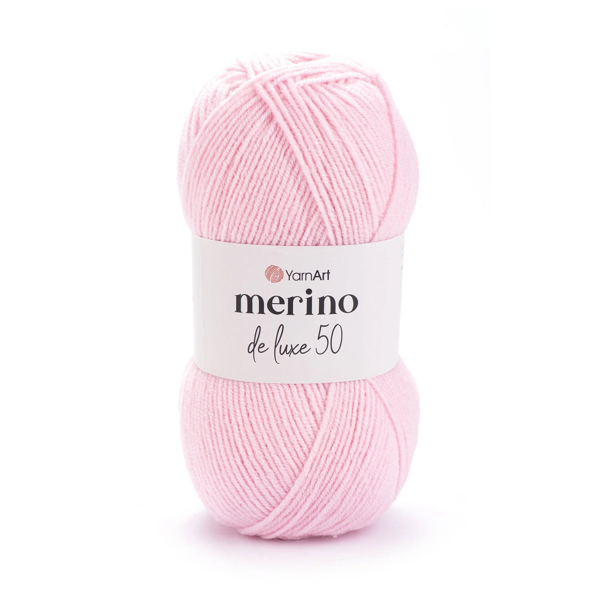 YarnArt Merino De Luxe 50 is a soft blend of merino wool and acrylic, offering fine gauge and light-DK weight. Its generous 280 m length in a 100 g skein makes it perfect for airy shawls, baby wear, and elegant layering pieces. The blend combines warmth and durability, with excellent stitch definition and a comfortable drape.