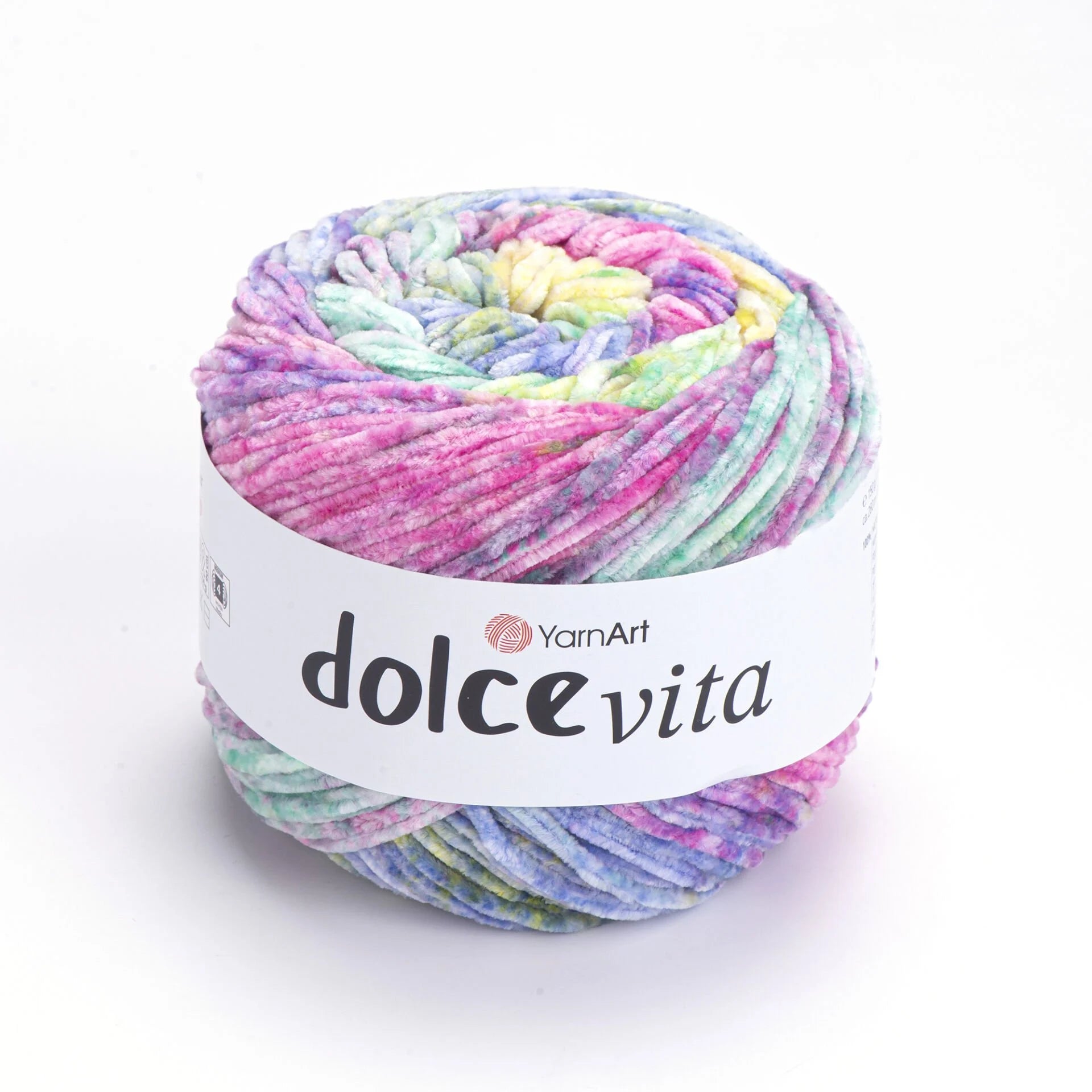 YarnArt Dolce Vita: is a luxurious medium-weight (Worsted/Aran) chenille yarn. Its plush, velvety texture and subtle sheen make it a delight to the touch—perfect for cozy garments, home decor, and soft toys.