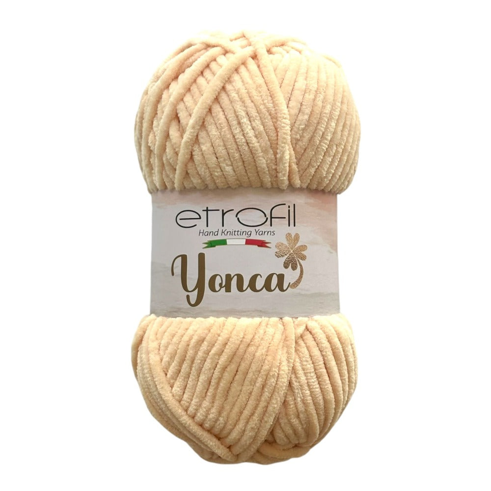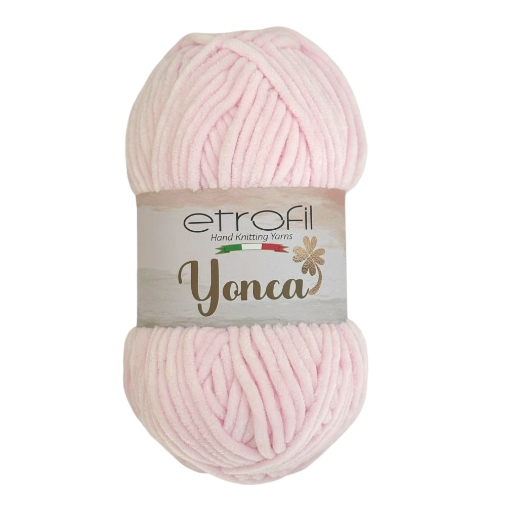 Etrofil Yonca Baby offers the luxurious softness and rich texture of velvet yarn, creating a cloud-like knitting experience. Its plush surface delivers a velvety touch with excellent structure, allowing finished projects to maintain their shape over time.
