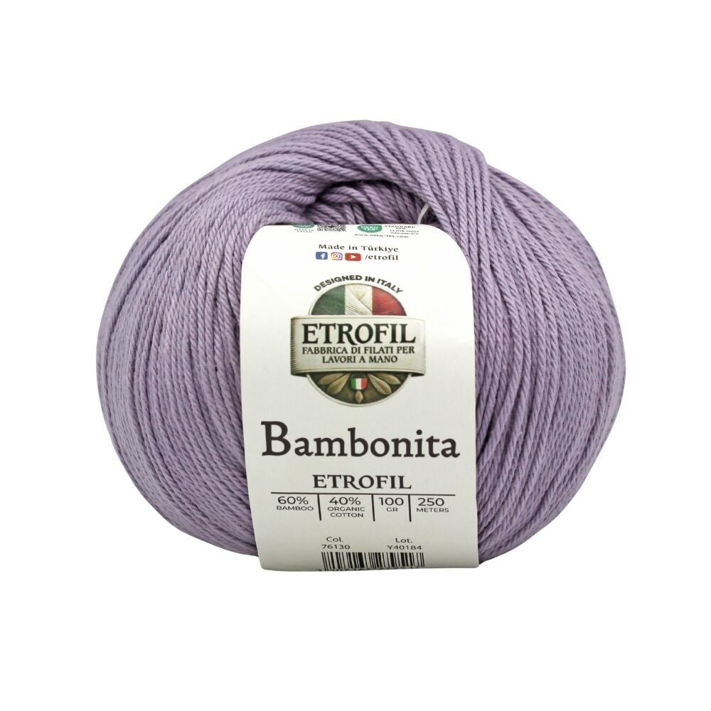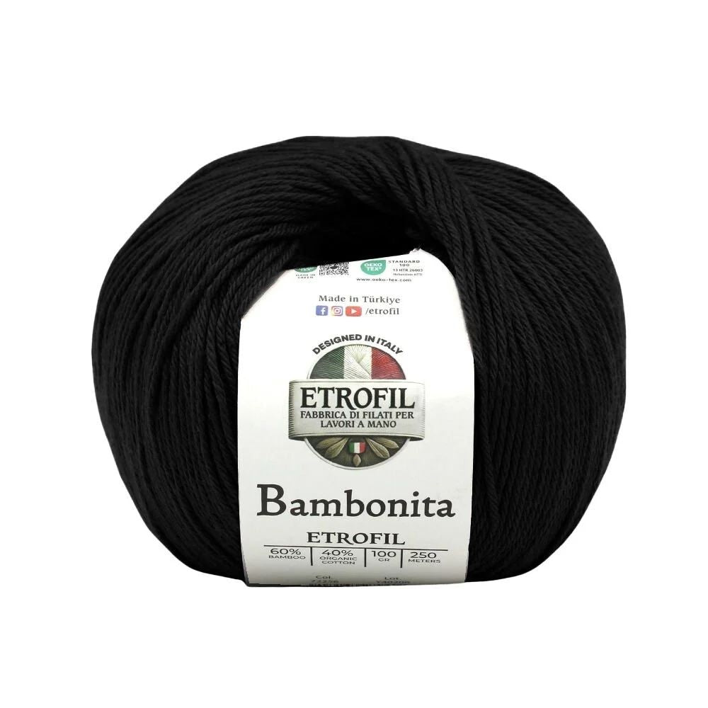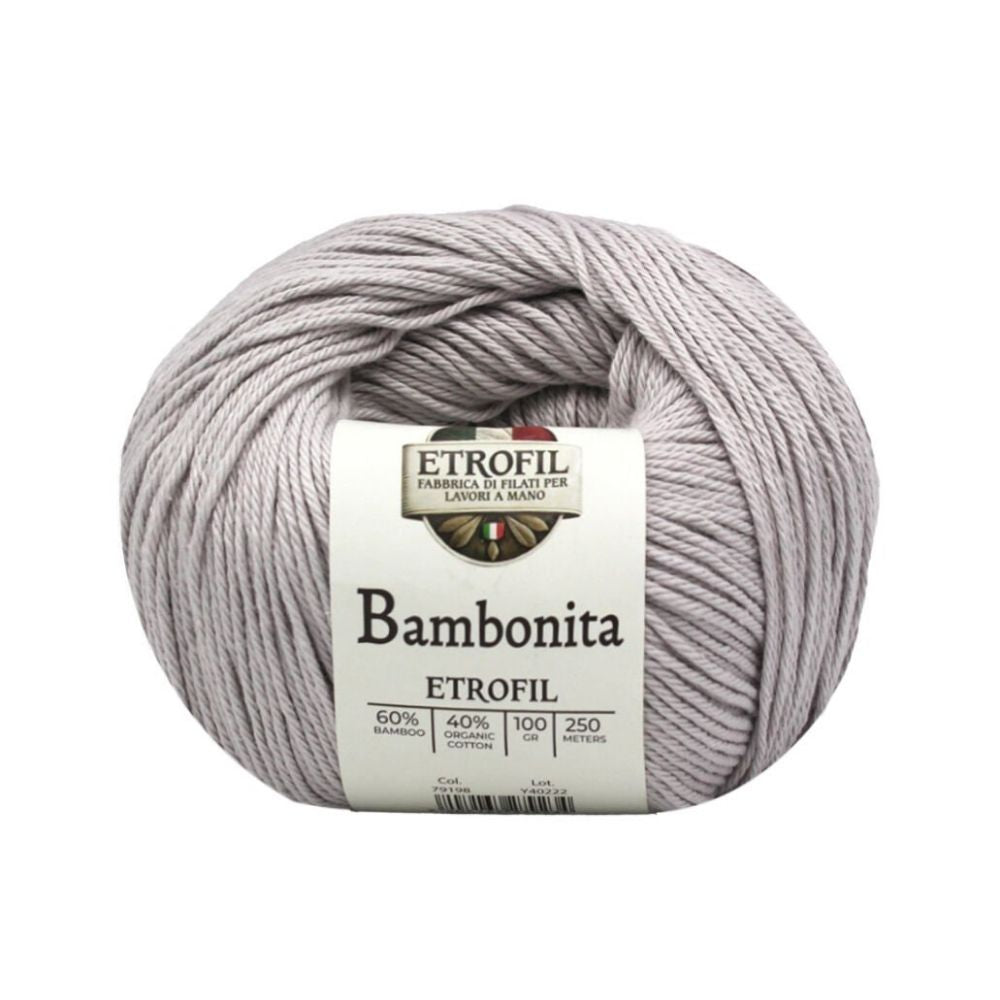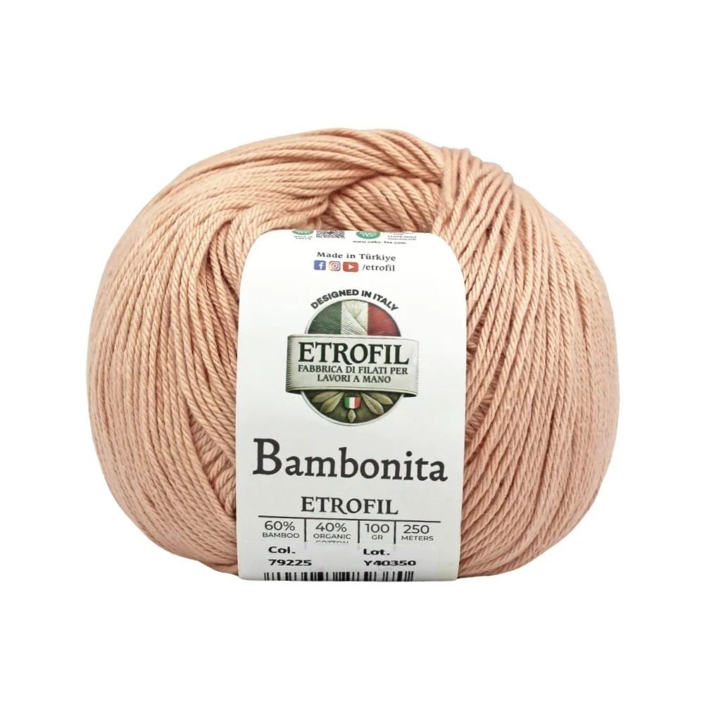 Etrofil Bambonita es un hilo ligero, transpirable y suave para la piel, elaborado con una mezcla natural de bambú y algodón orgánico. El bambú aporta brillo sedoso y frescura, mientras que el algodón ofrece comodidad y transpirabilidad.