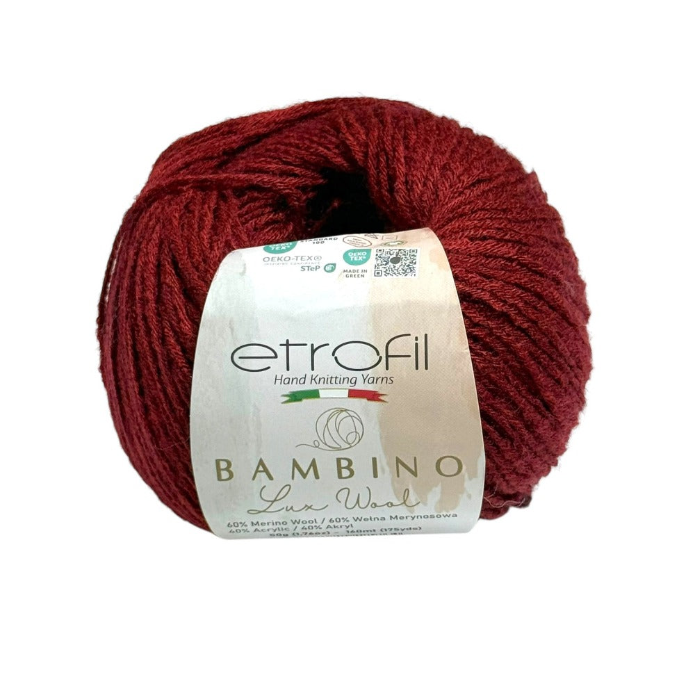 Etrofil Bambino Lux Wool es un hilo refinado elaborado con fibras de lana merino de primera calidad, reconocidas mundialmente por su excepcional suavidad, calidez y comodidad. El vellón merino cuidadosamente seleccionado es la base de esta colección, ofreciendo una textura suave y agradable al tacto.