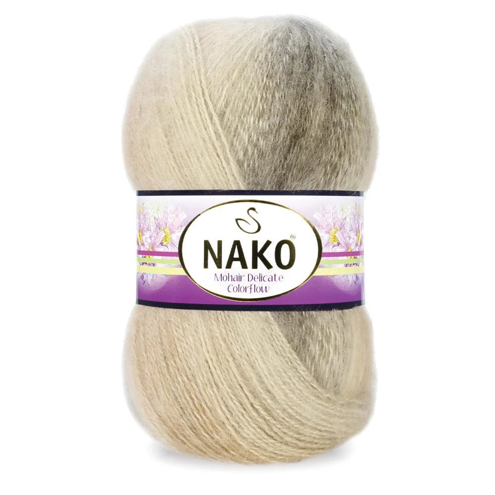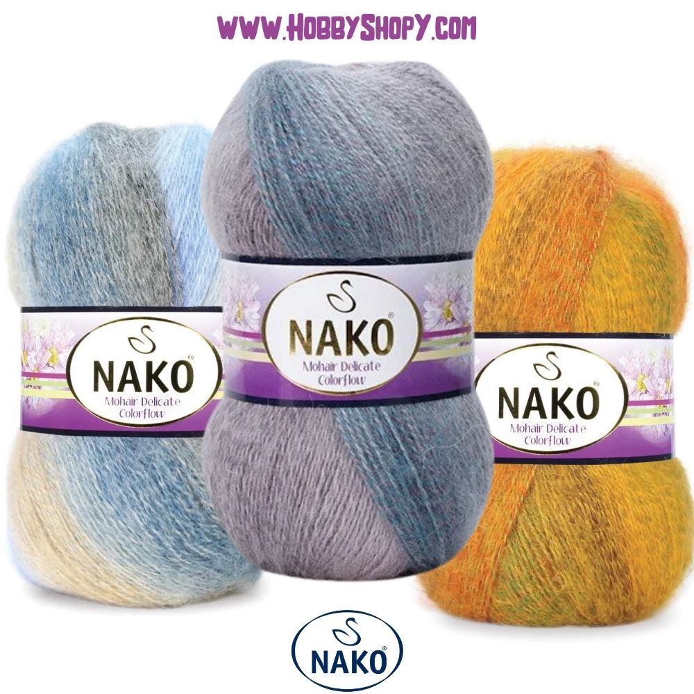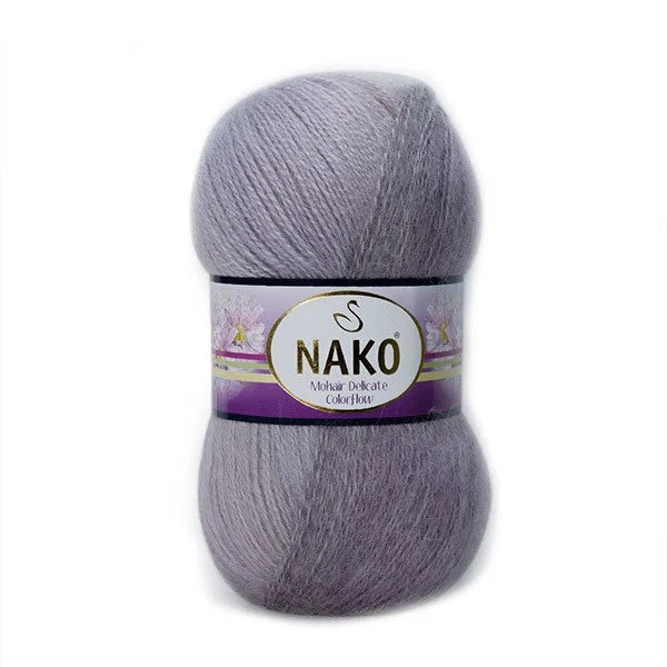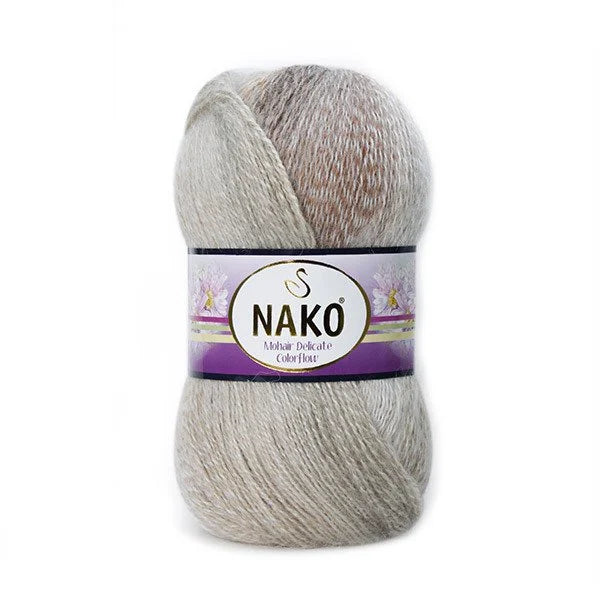 Enjoy the softness and vibrant tones of MOHAIR DELICATE COLORFLOW. Made from Nako mohair, this luxurious yarn will enhance your knitting projects with a stylish touch. Perfect for creating cozy sweaters, hats and scarves.