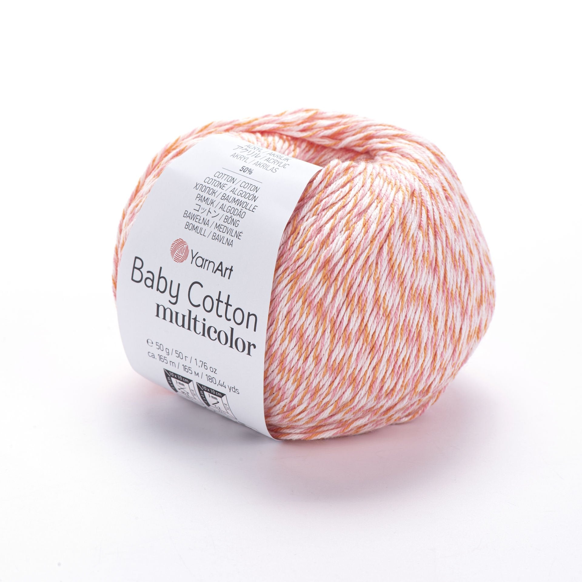 YarnArt Baby Cotton Multicolor is a delicate yarn blending the breathability of cotton with the durability of acrylic. With its lightweight (Sport/Fine) composition and soft texture, it's perfect for crafting baby garments, summer clothing, amigurumi toys, and lightweight accessories. The variegated multicolor adds visual interest to every stitch, making your creations both functional and beautiful