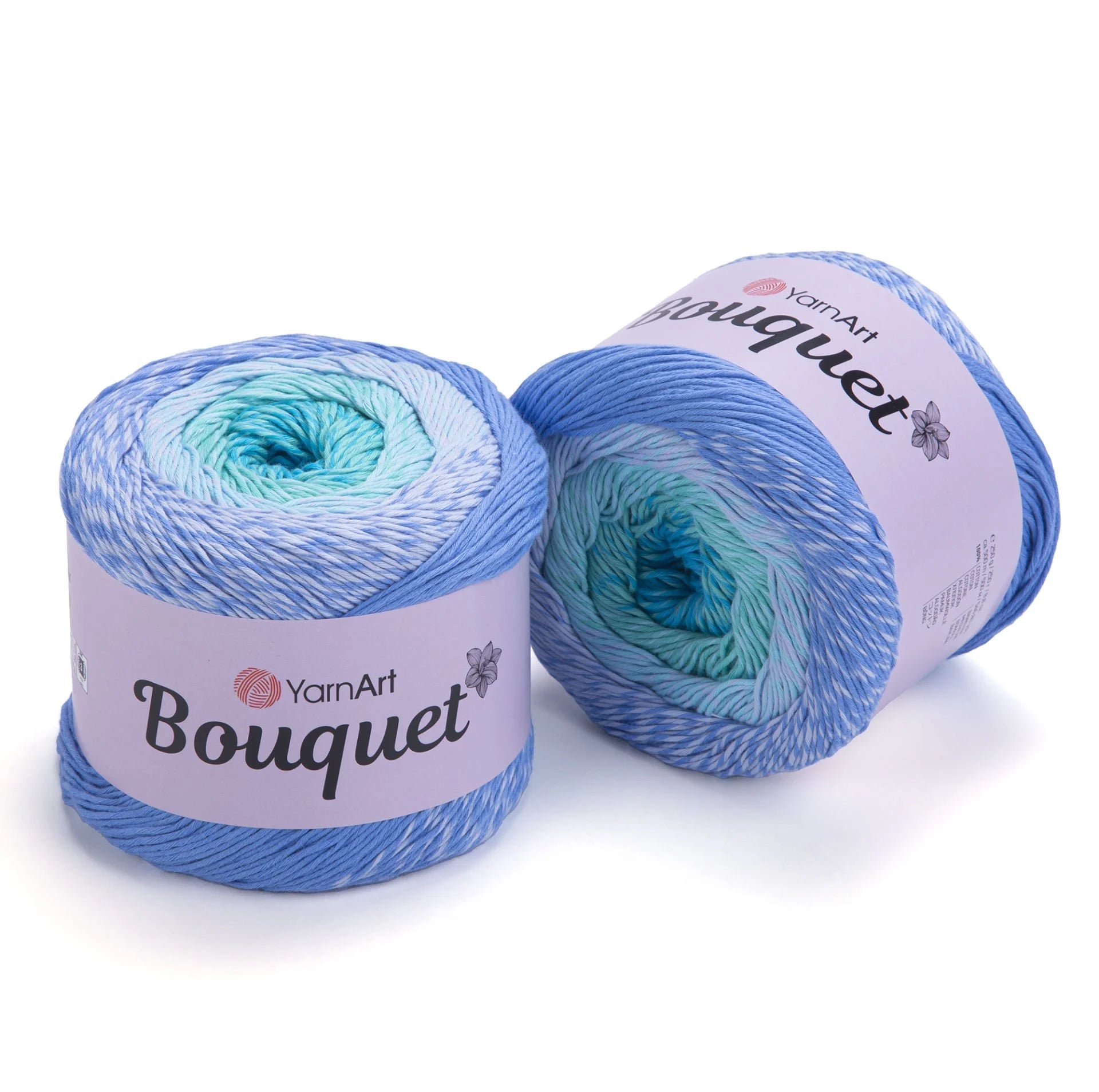 YarnArt Bouquet is a vibrant, 100% cotton DK-weight yarn offering rich, cascading color transitions—perfect for warm-weather creations. Each 250 g cake provides a generous 500 m of yarn, ideal for knitting or crocheting comfortable garments, accessories, and decor.