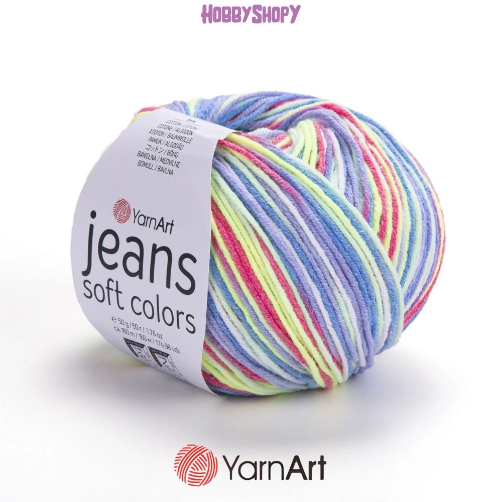 Discover the soft color tones of YarnArt Jeans Soft Colors, the newest addition to the Yarnart Jeans family. Made of cotton and acrylic, this yarn offers the same thickness and texture as regular Jeans. Perfect for both crochet and knitting, the possibilities are endless for summer and seasonal clothing, accessories, baby items, and toys. (Get your knits in a row with YarnArt Jeans Soft Colors!)