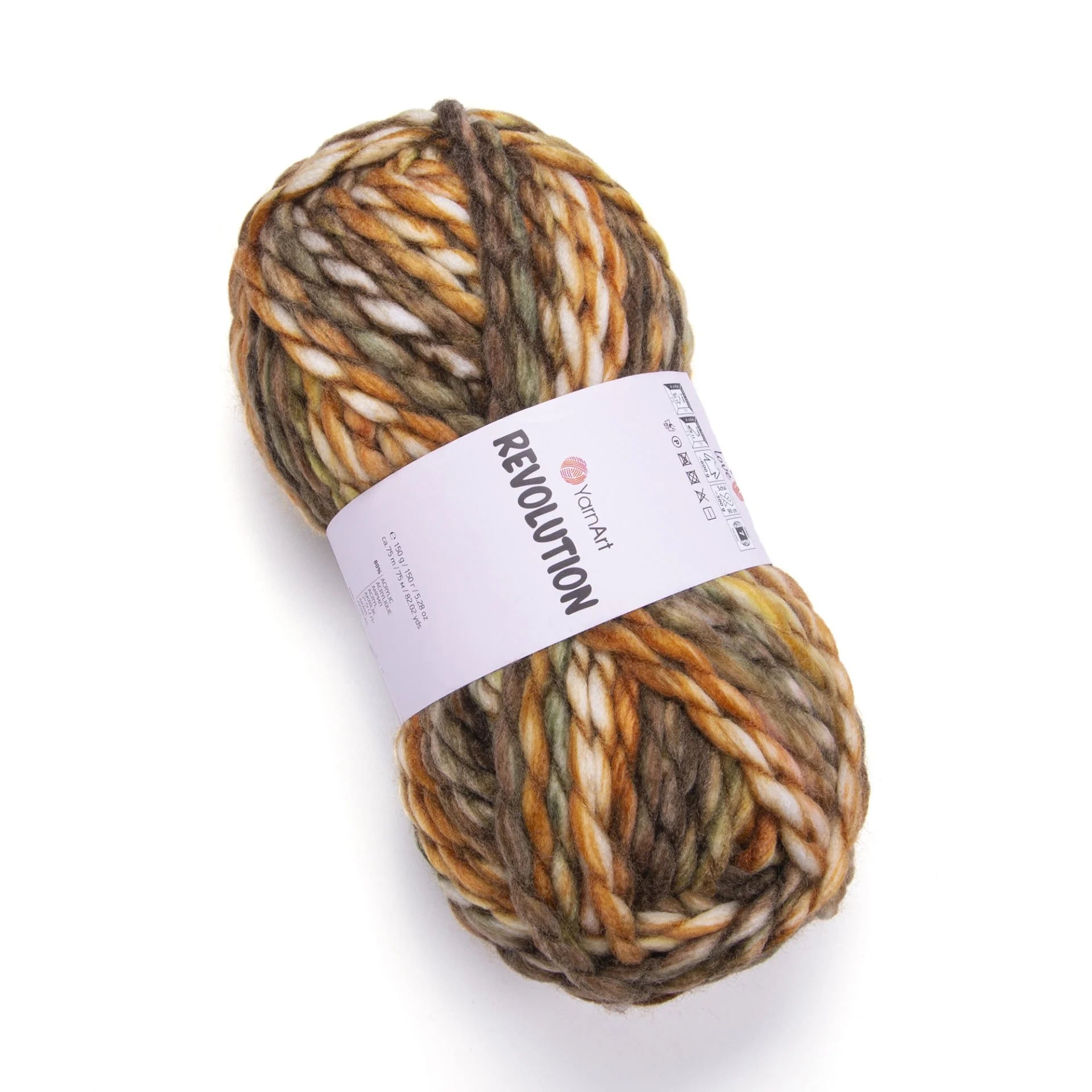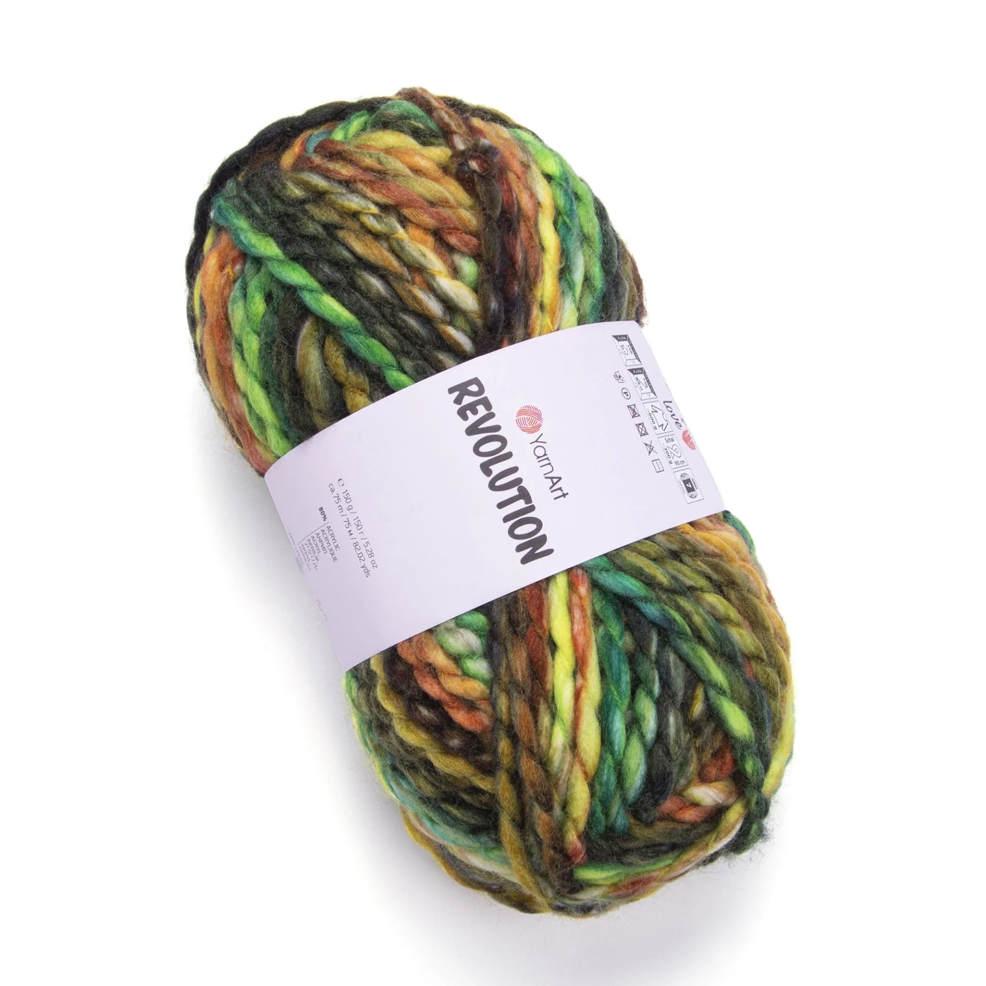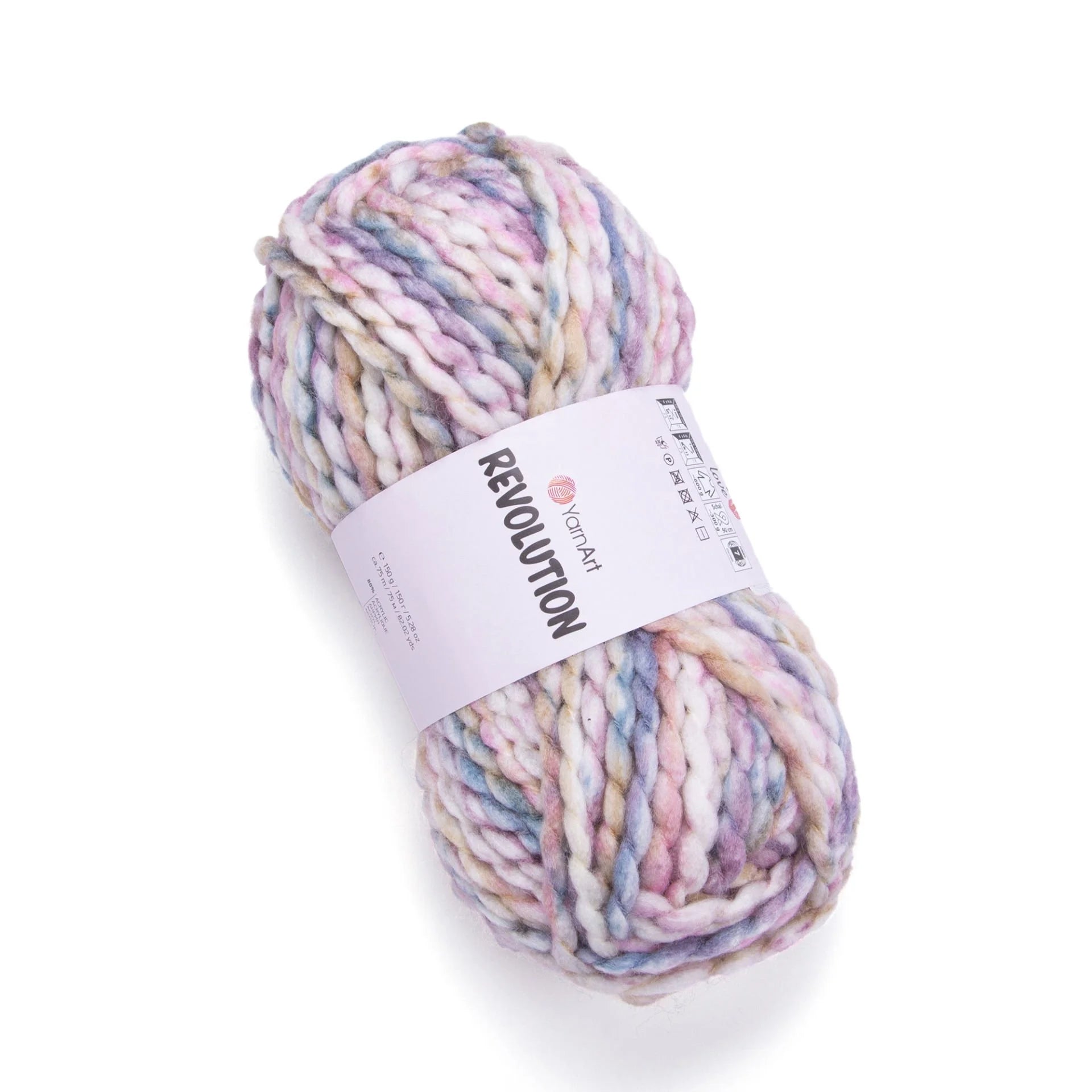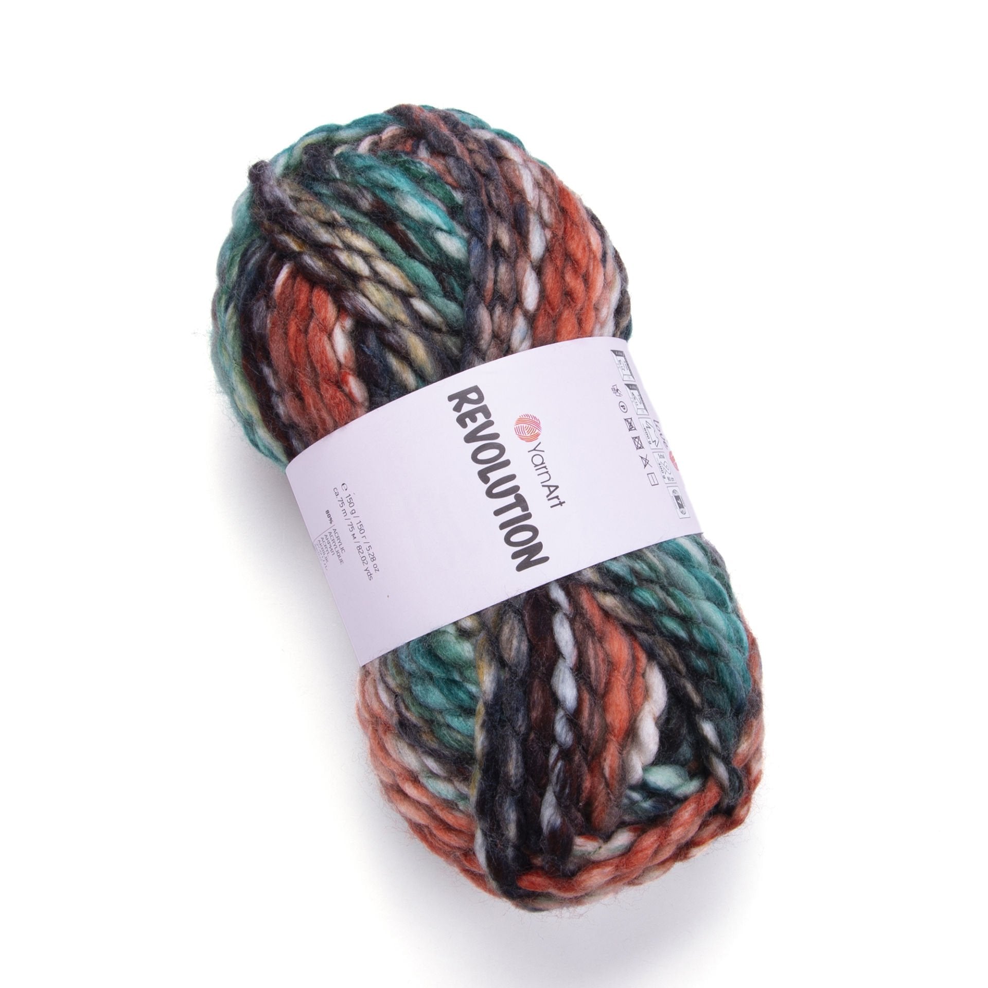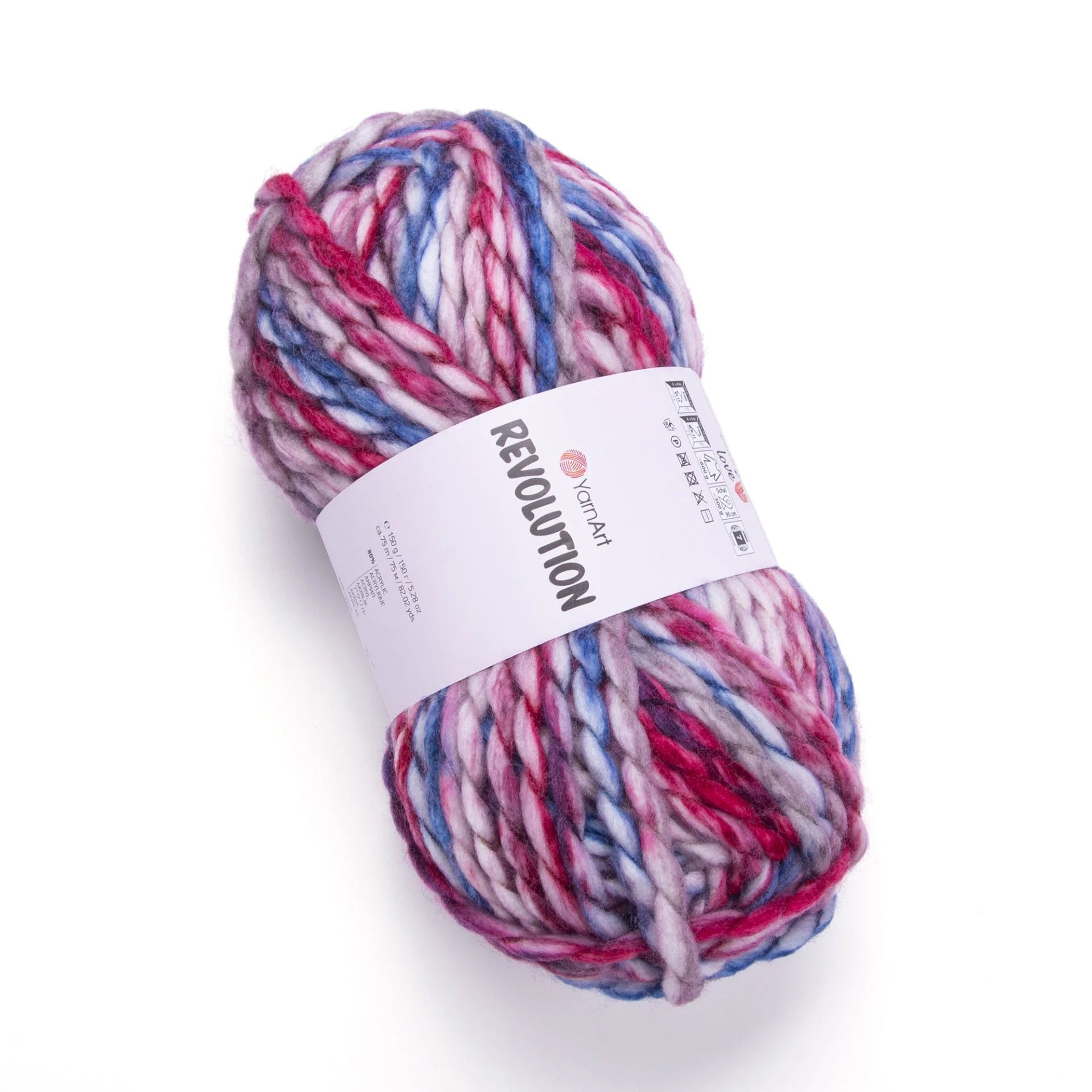 YarnArt Revolution variegated yarn, enriched with 20% wool, offers warmth, softness, and comfort in every project. The vibrant and unique color transitions make it perfect for handmade shawls, blankets, cardigans, and winter accessories. Thanks to its acrylic content, it is a durable and non-stretching choice. As a jumbo weight yarn, it saves time on bulky knit or crochet projects while giving excellent texture and volume, making it a favorite among knitters and crocheters. Also ideal for home décor, hats, scarves, and cozy throws.