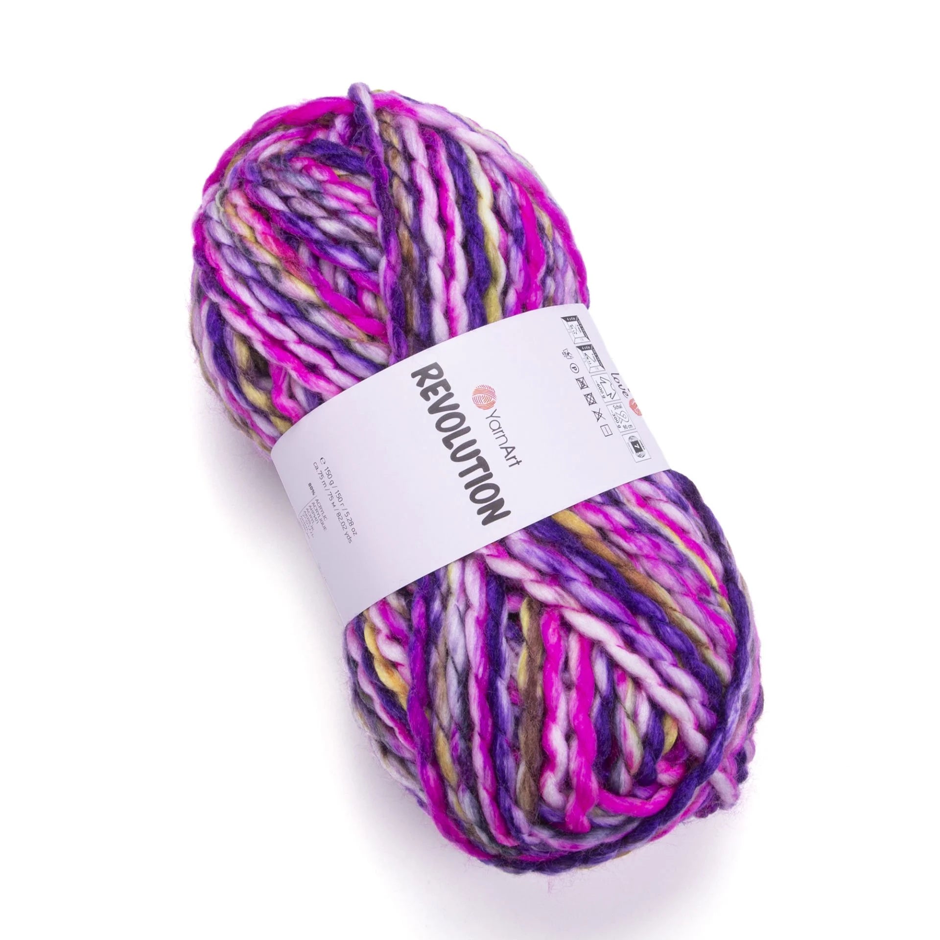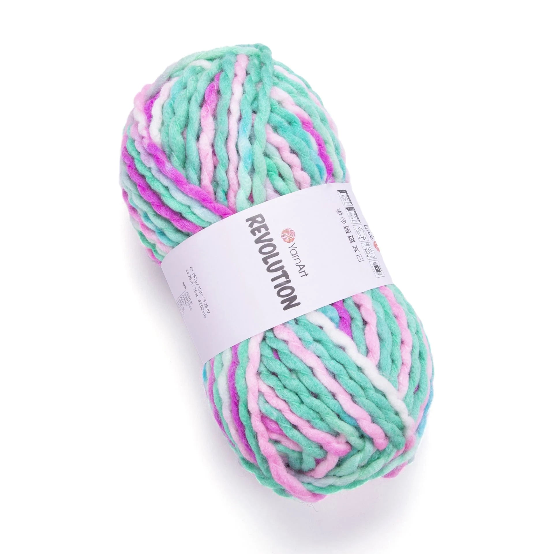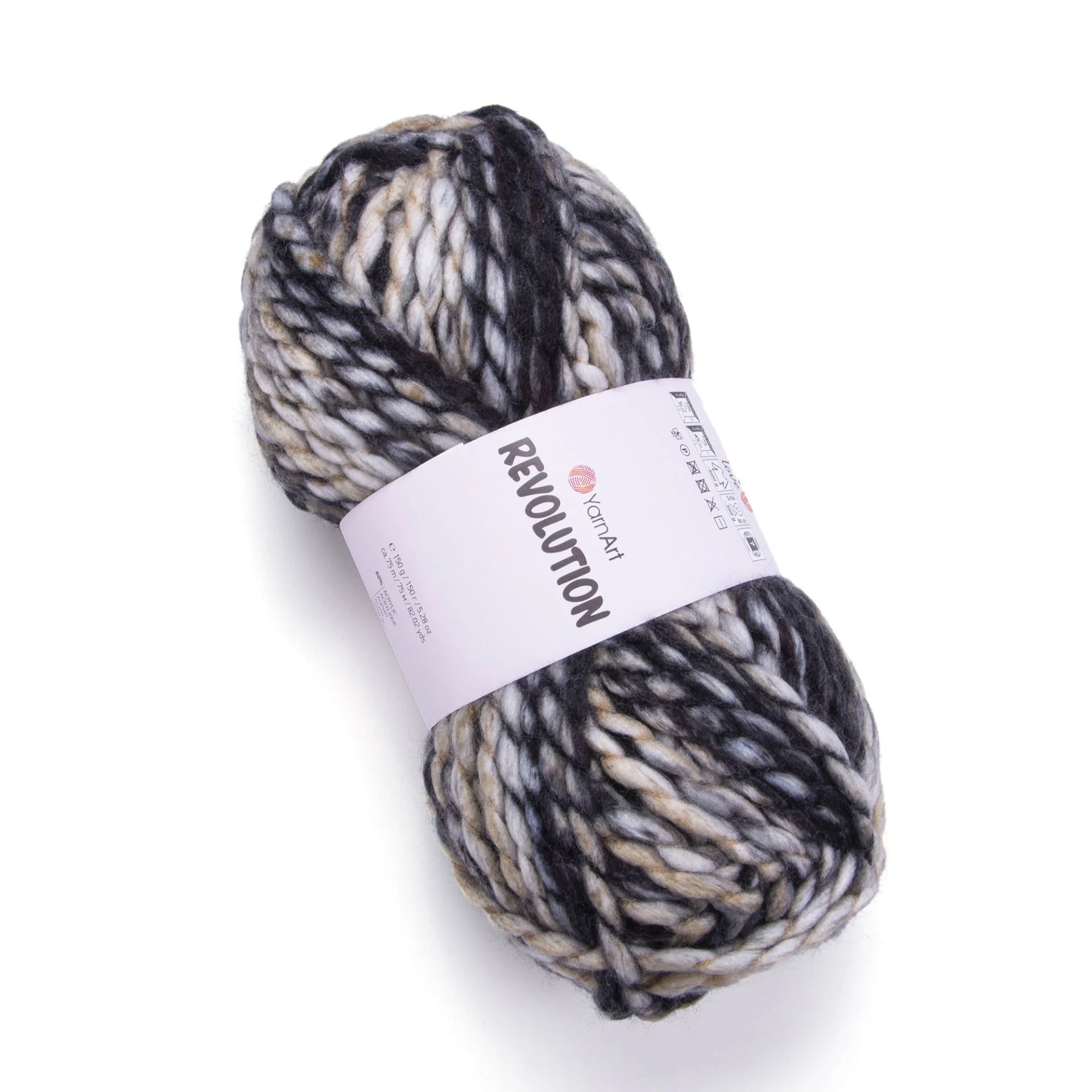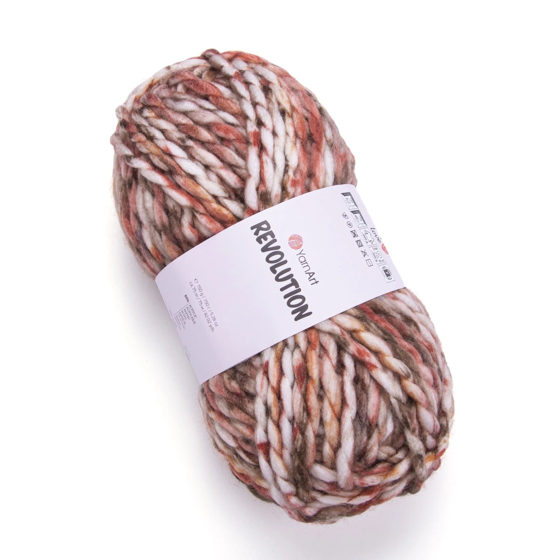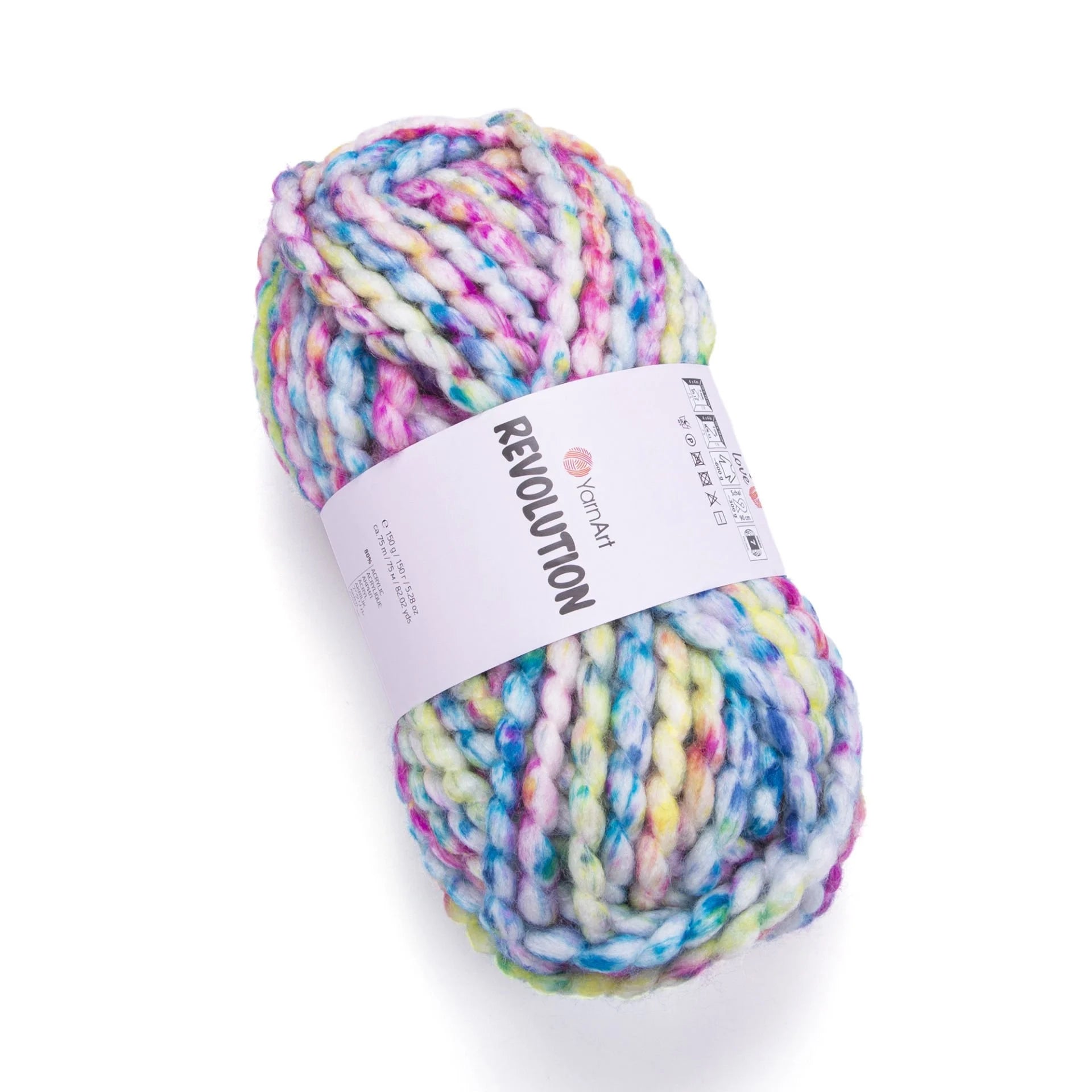 YarnArt Revolution variegated yarn, enriched with 20% wool, offers warmth, softness, and comfort in every project. The vibrant and unique color transitions make it perfect for handmade shawls, blankets, cardigans, and winter accessories. Thanks to its acrylic content, it is a durable and non-stretching choice. As a jumbo weight yarn, it saves time on bulky knit or crochet projects while giving excellent texture and volume, making it a favorite among knitters and crocheters. Also ideal for home décor, hats, scarves, and cozy throws.