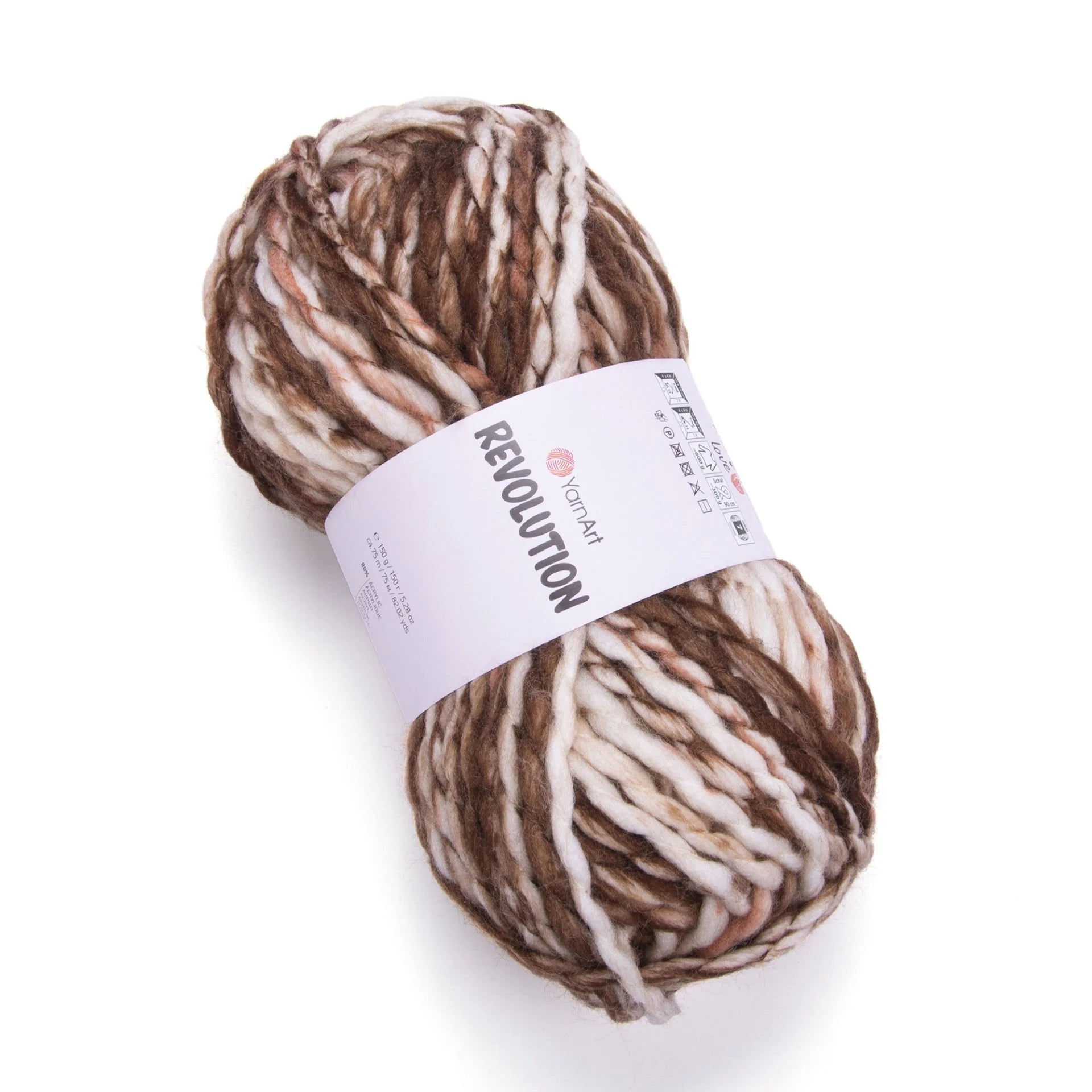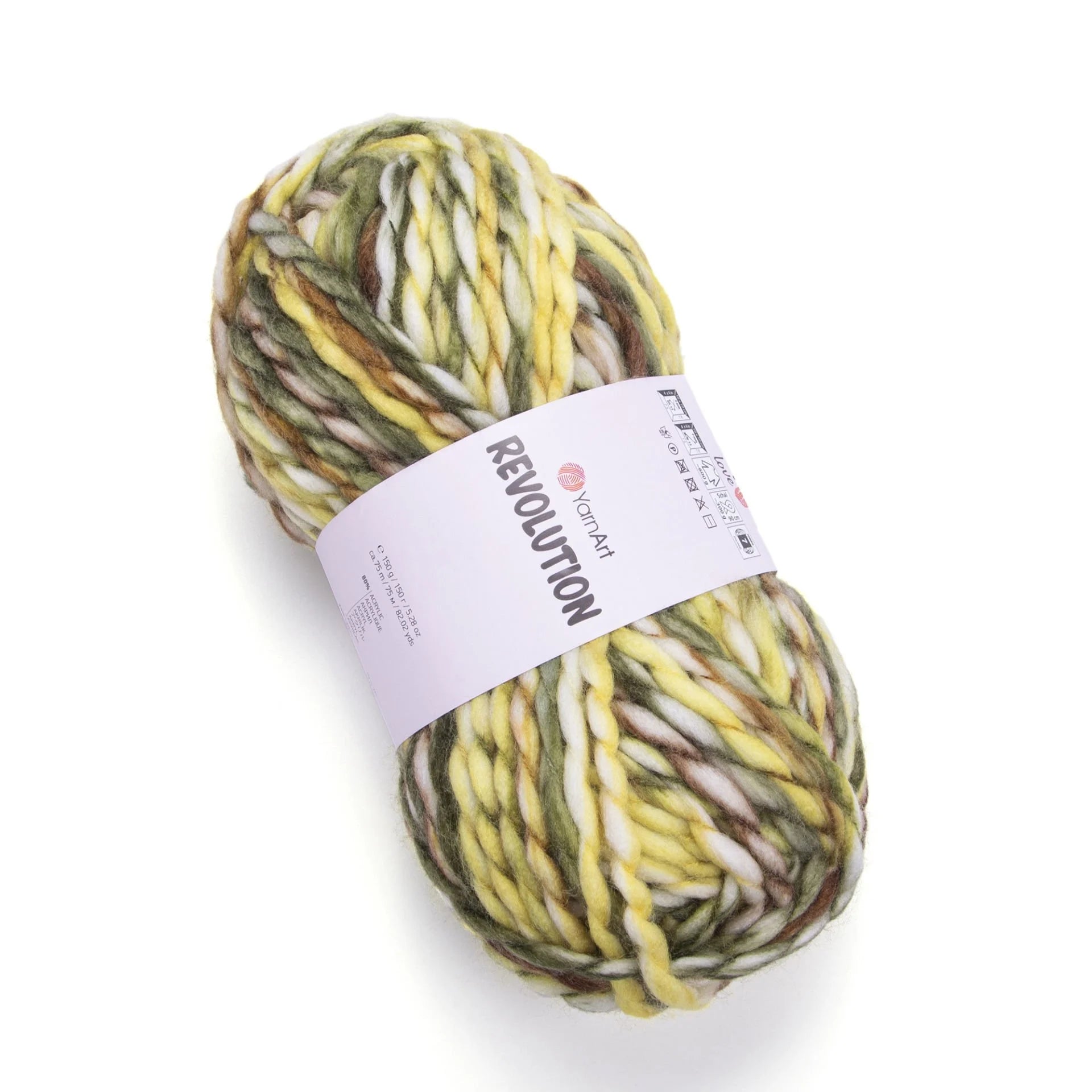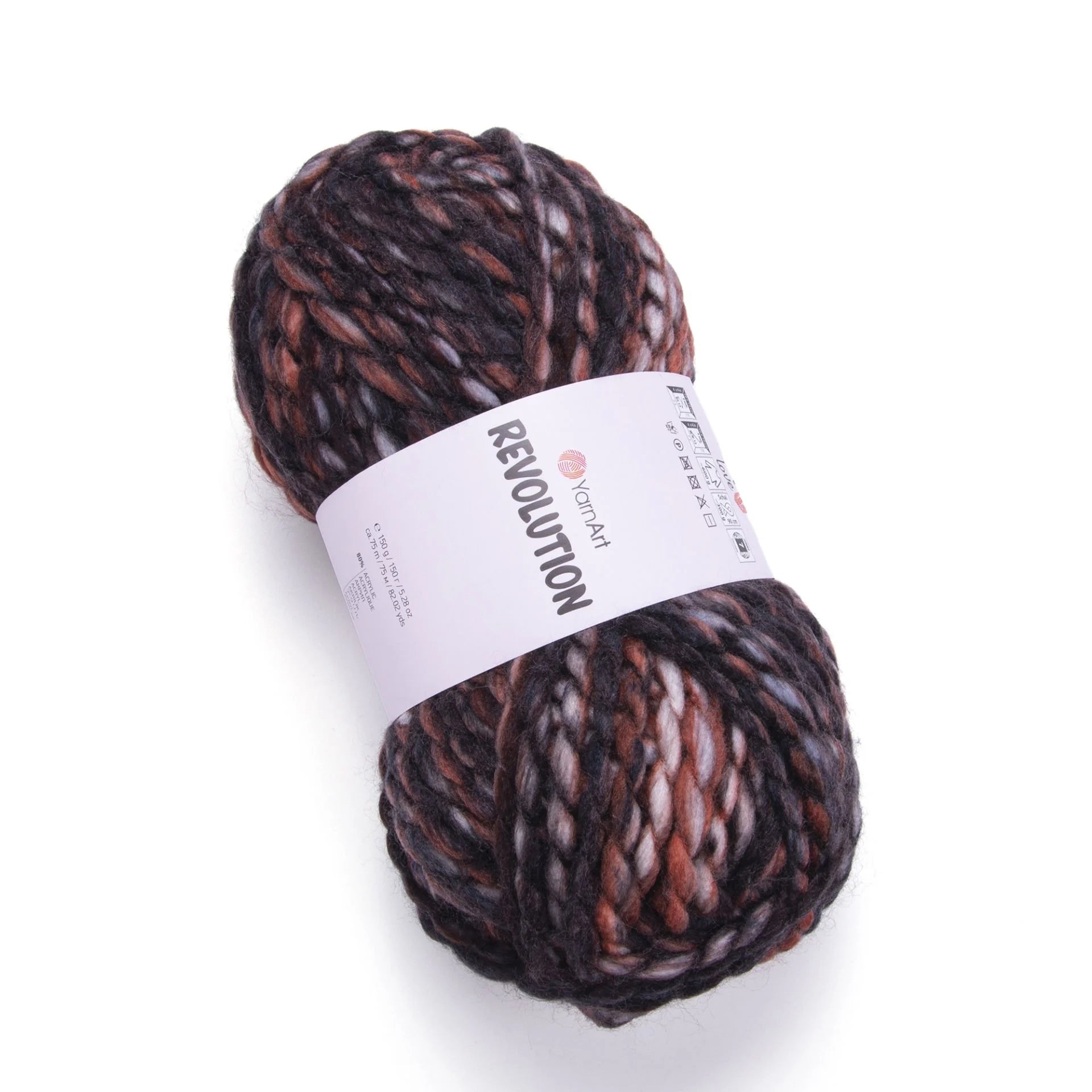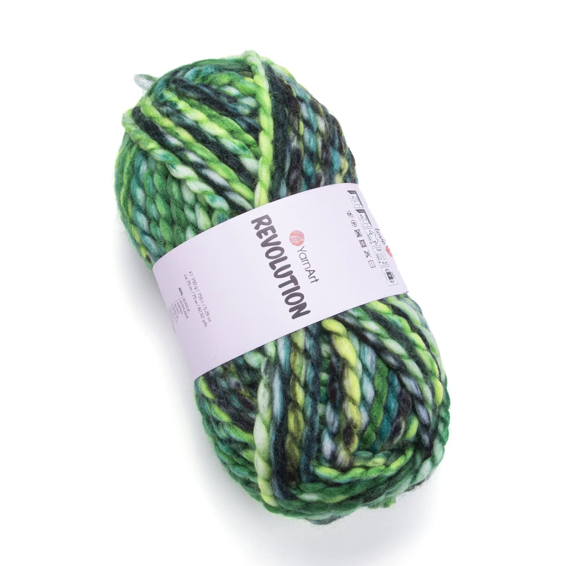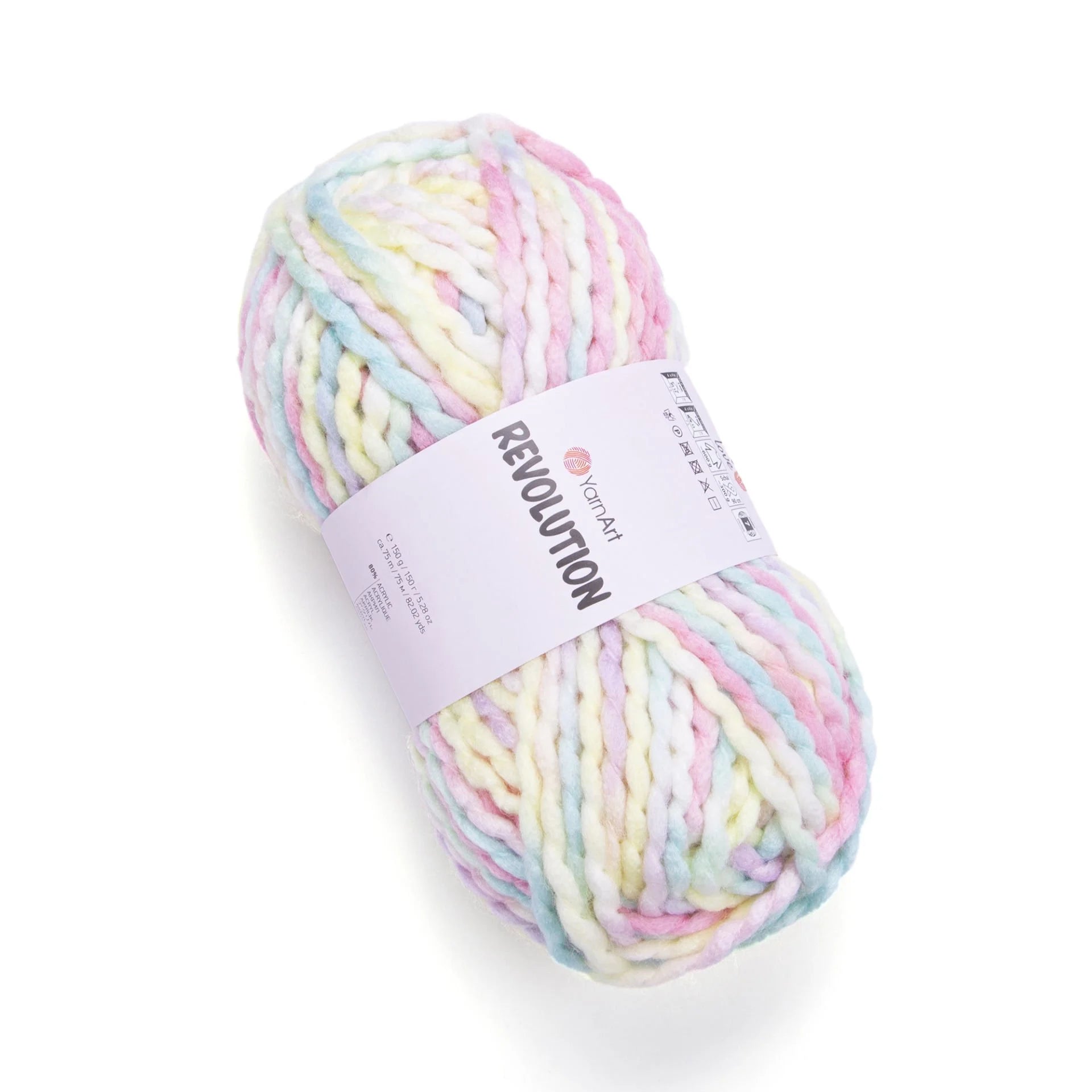 YarnArt Revolution variegated yarn, enriched with 20% wool, offers warmth, softness, and comfort in every project. The vibrant and unique color transitions make it perfect for handmade shawls, blankets, cardigans, and winter accessories. Thanks to its acrylic content, it is a durable and non-stretching choice. As a jumbo weight yarn, it saves time on bulky knit or crochet projects while giving excellent texture and volume, making it a favorite among knitters and crocheters. Also ideal for home décor, hats, scarves, and cozy throws.