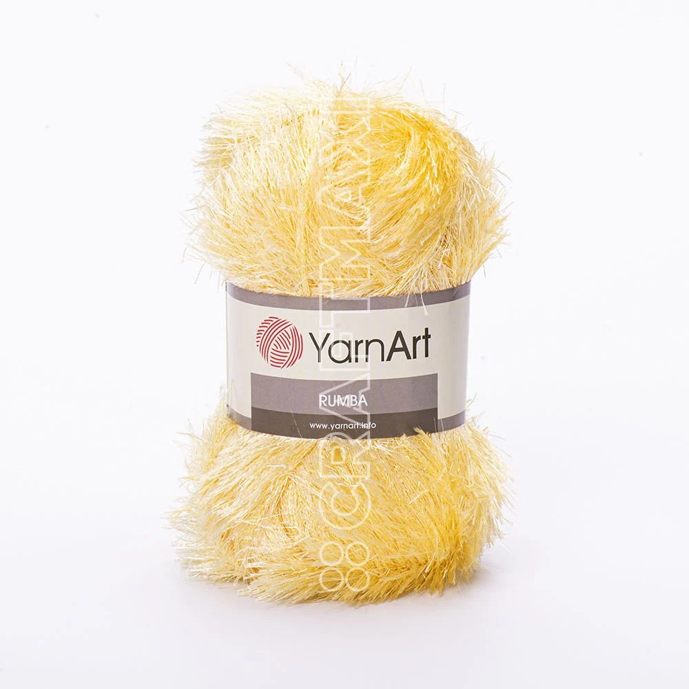YarnArt Rumba eyelash yarn combines 80% polyester with 20% metallic fibers to create a glamorous, sparkling texture. Its long, silky eyelash fibers add elegant shine and depth to your knitting and crochet projects. Works beautifully on its own or paired with other yarns to create unique textures. Ideal for eye-catching scarves, shawls, accessories, and decorative accents in home décor.